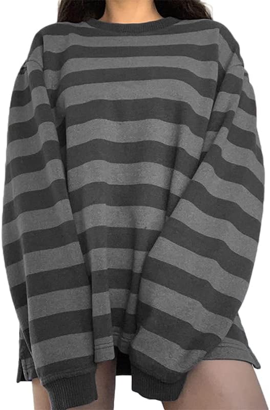 Women's Stripped Long Sleeve Shirt Y2K Baggy Shirts Teen Girls Fairy Grunge Clothes Vintage Streetwear T-Shirt
