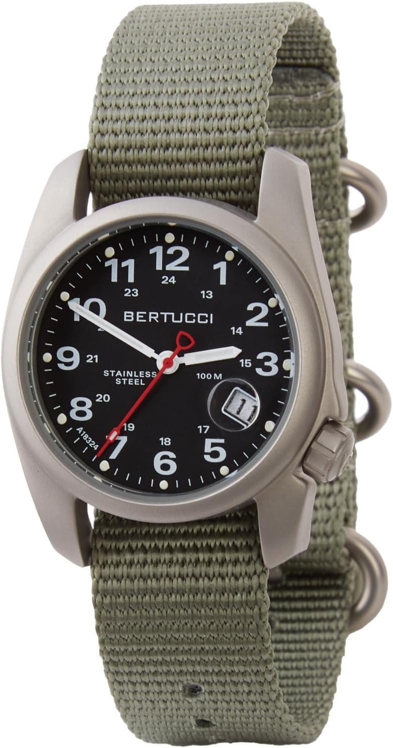 BERTUCCI A-1S Super Field Men's Watch - Stainless Steel Field Watch, 36MM Case, Defender Drab Nylon Band,10602