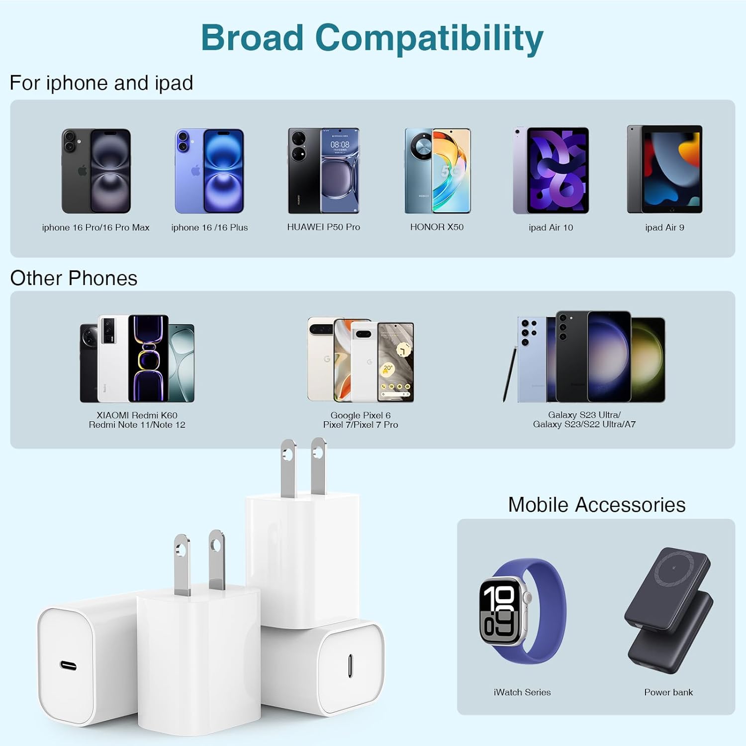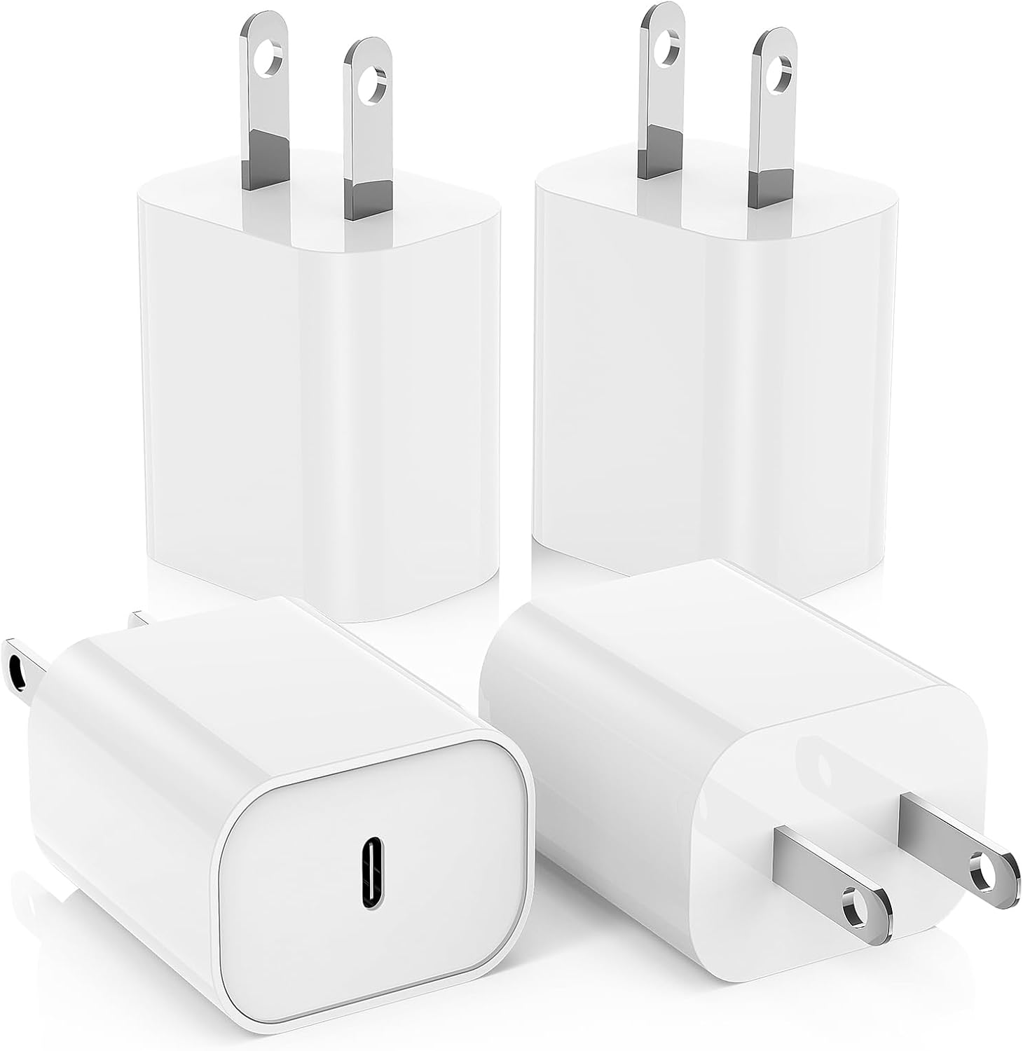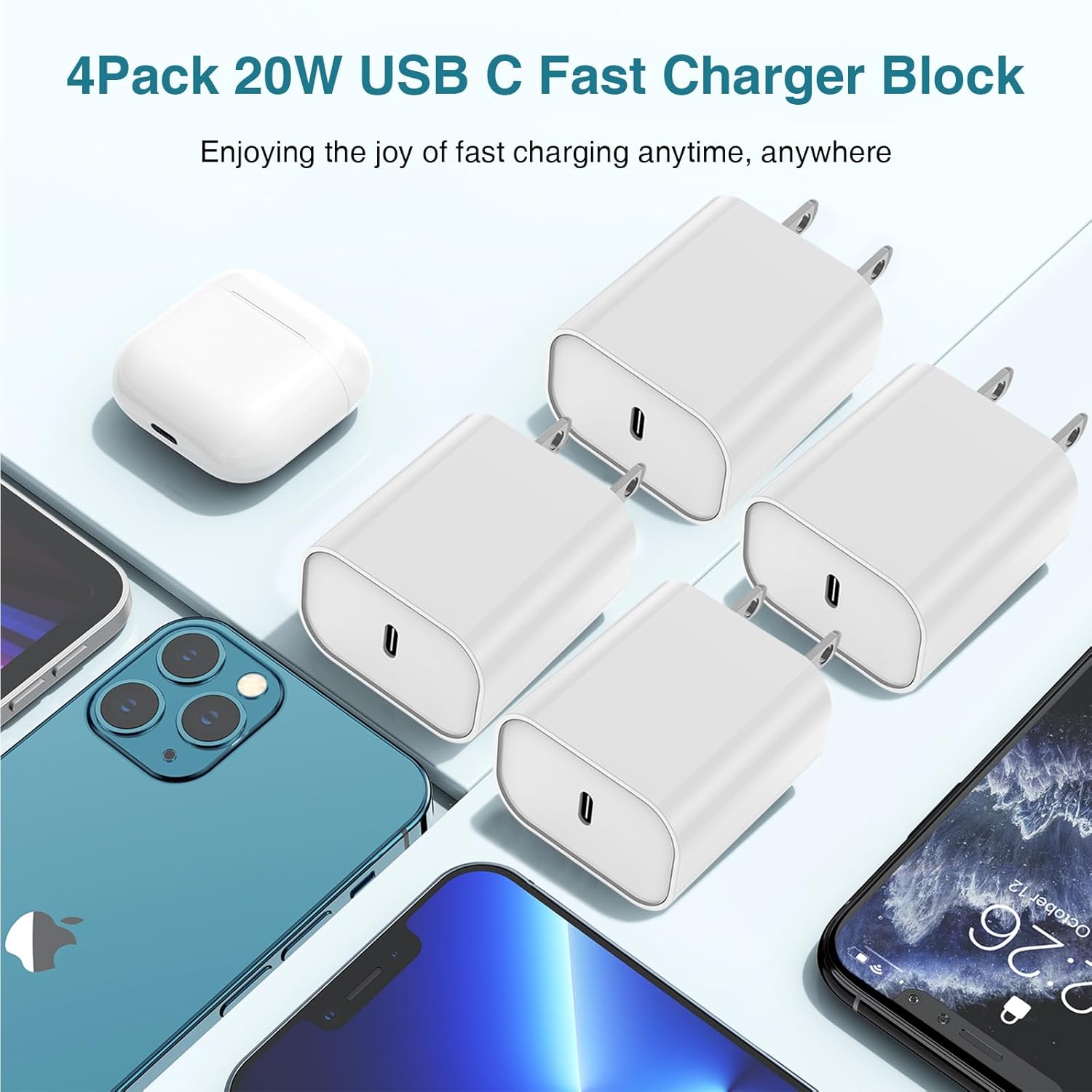 4Pack USB C Charger Block 20W, iPhone 16 15 Fast Charging Block for Apple 20W Type C Power Adapter Plug, for Apple iPhone Charger USB C for iPhone 16 15 Pro Max/14 13 12 Pro Max/iPad/Google,Samsung