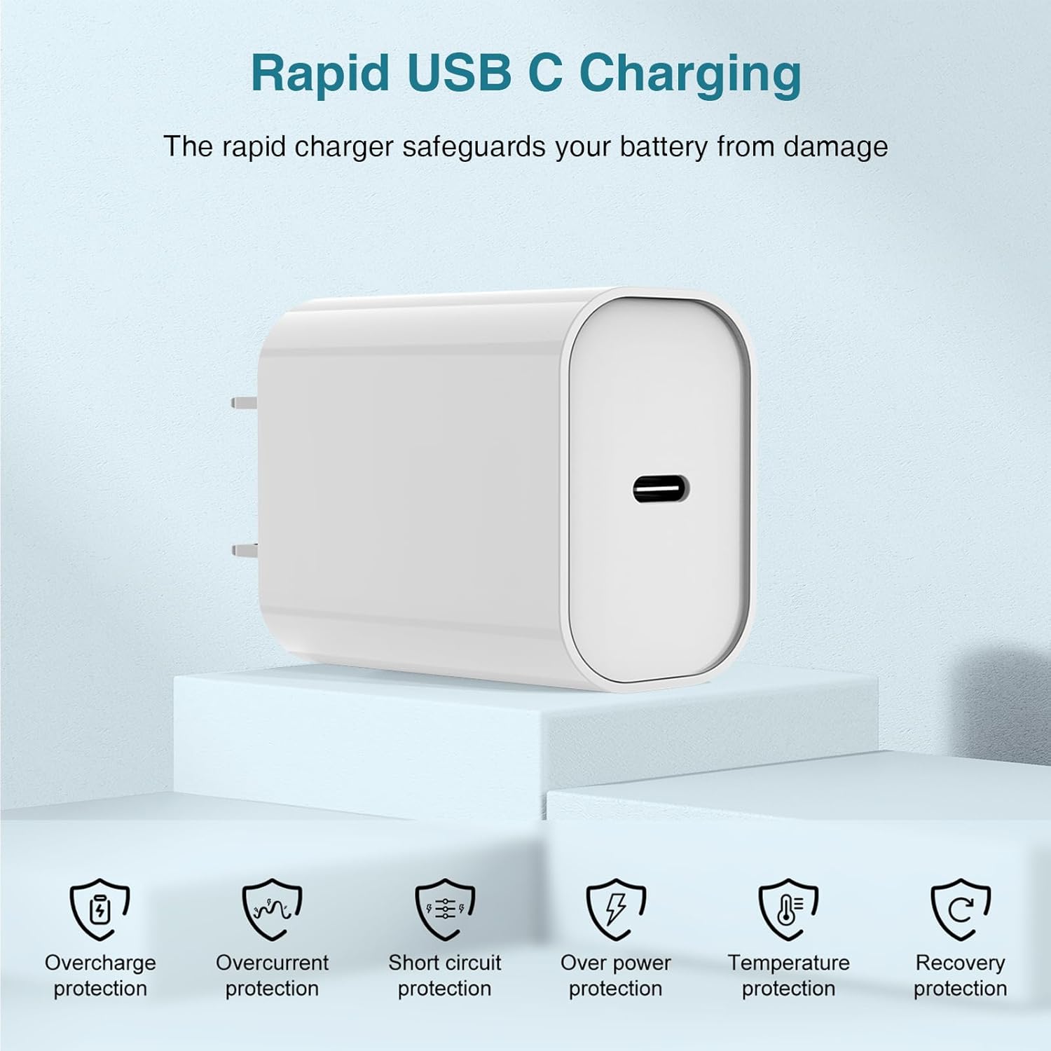 20W USB C Fast Charging Block: This 20W USB C charger block provides up to 20W of power for compatible devices, enabling fast charging. Compared to standard chargers, it significantly reduces charging time, allowing your devices to quickly reach full power and keep up with your busy life