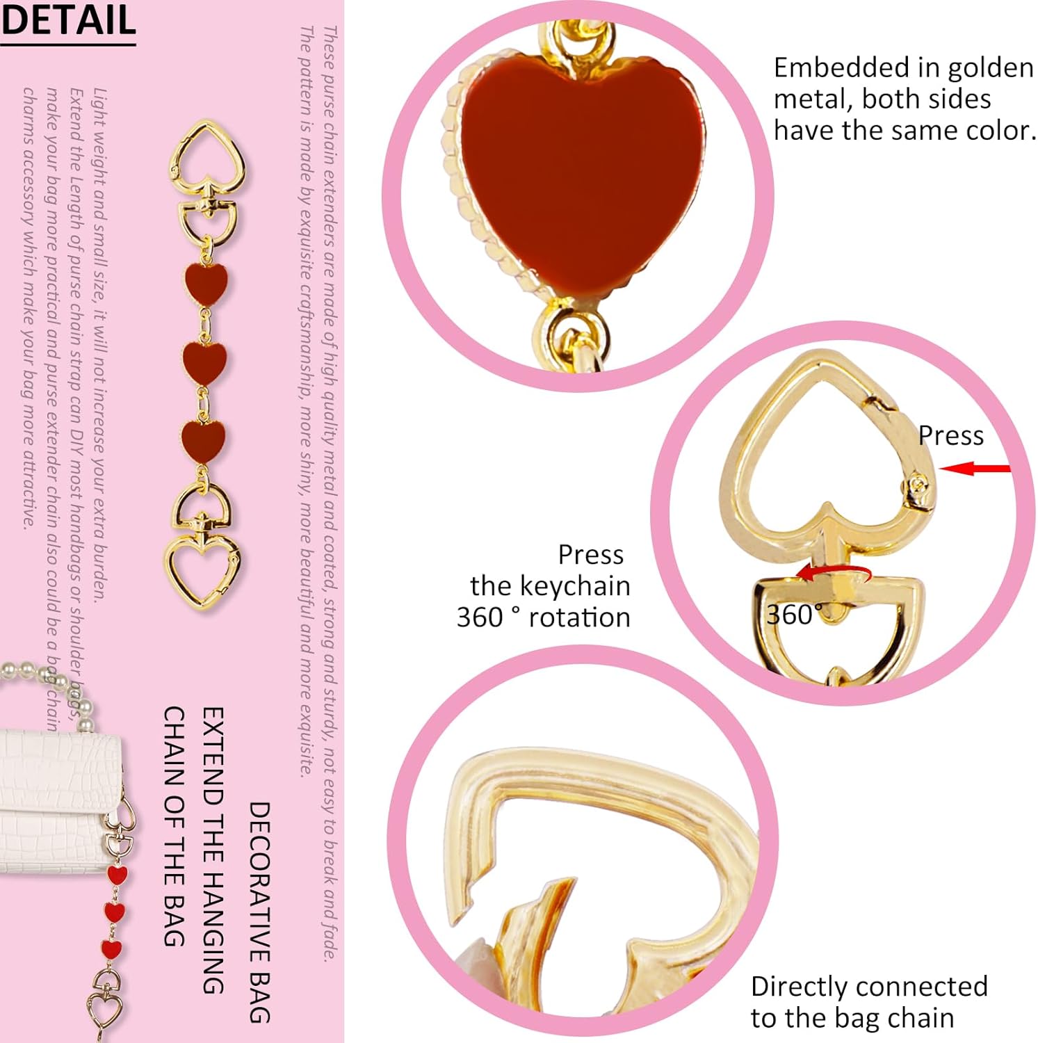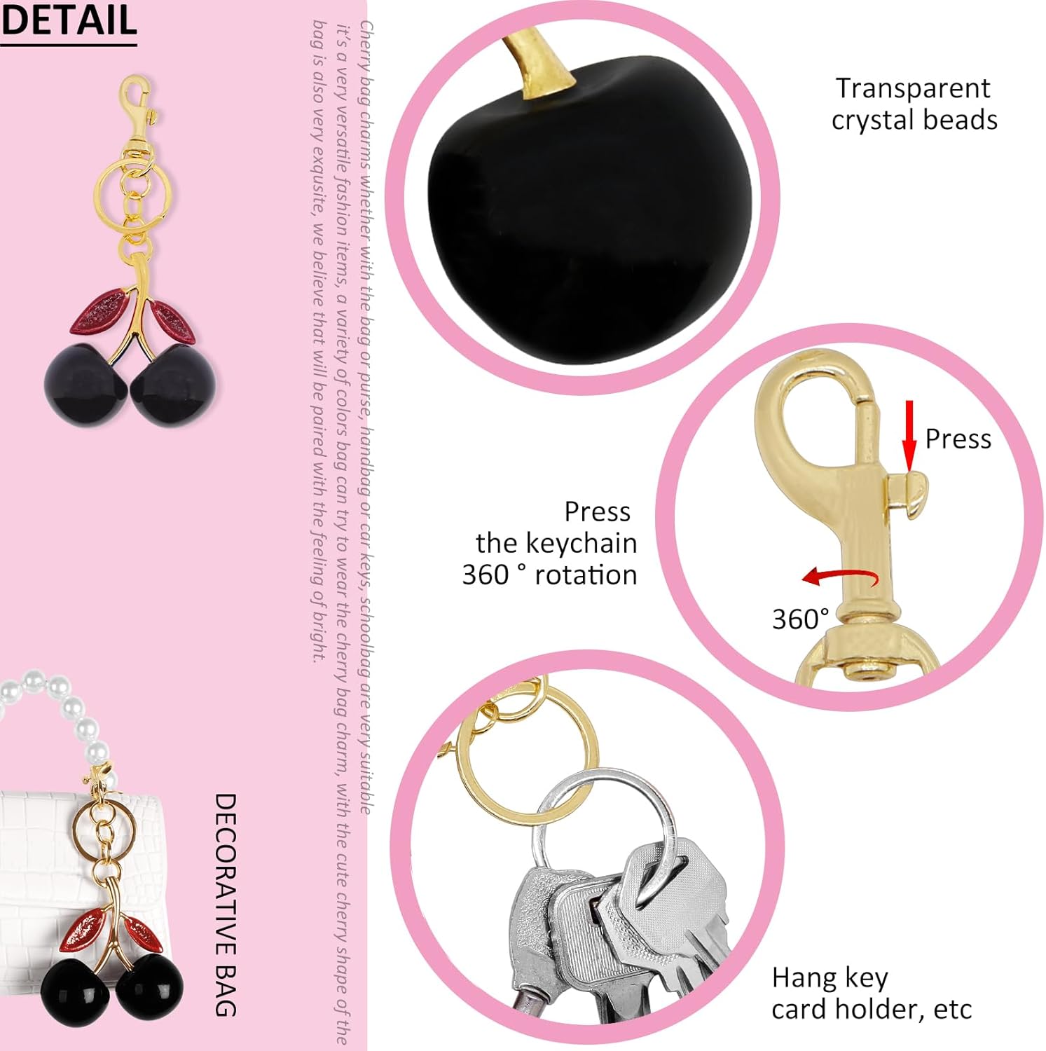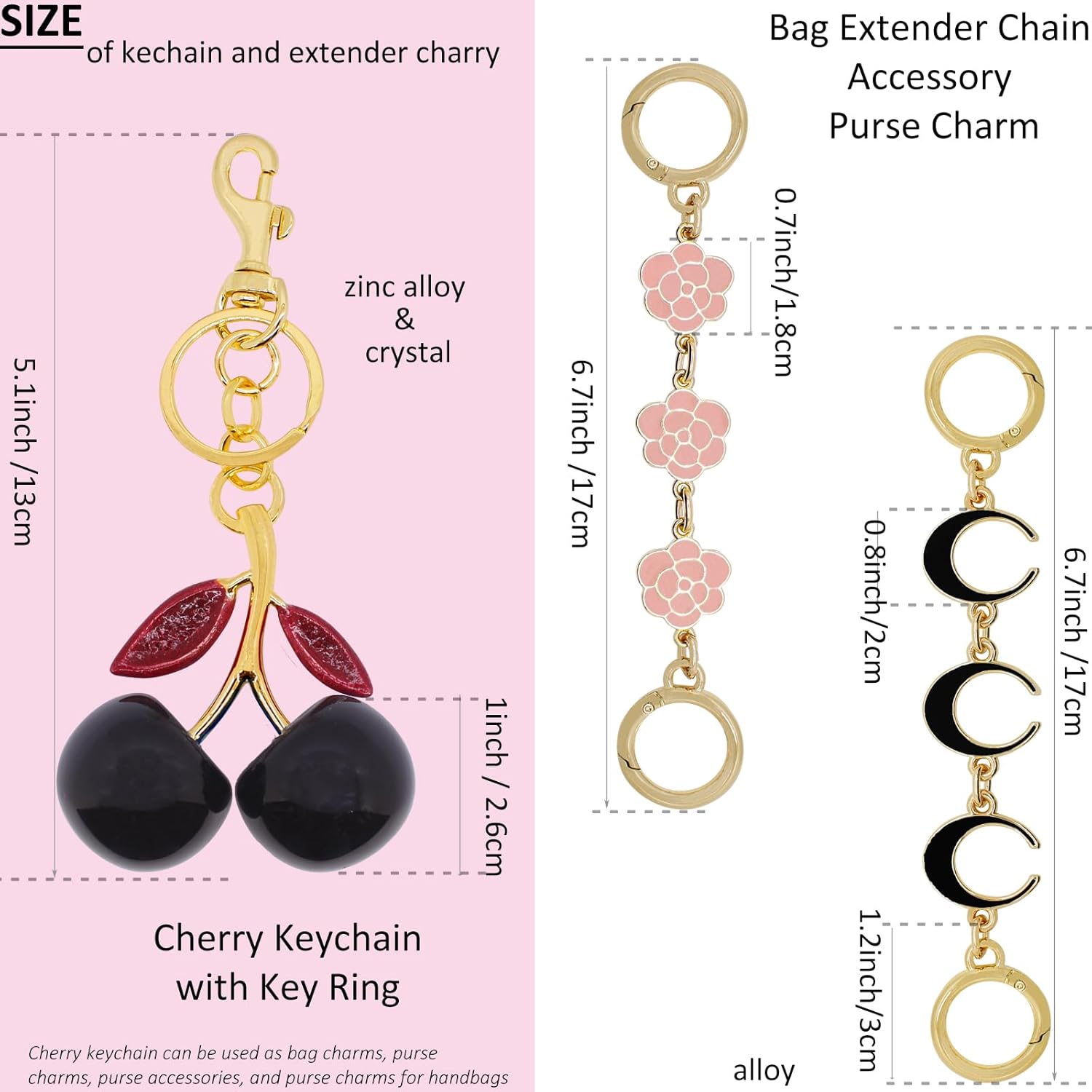 BIHRTC Cherry Bags Charm Bag Extender Chain Strap Replacement Accessories Bag Charms for Purses Bags Handbags
