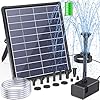 POPOSOAP 6.5W Solar Fountain Pump for Bird Bath Built-in 3000mAh Battery Backup, DIY Solar Water Fountain with Double-Layer Nozzles & Dry-Run Protection 5Ft Tubing for Ponds, Bird Bath, Water Features