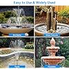 [✔Built-in Battery Backup]: The solar fountain pump for bird bath has a 6.5W large powerful solar panel built-in rechargeable 3000mAh battery backup to store energy makes it winner. The solar pump will keep running on cloudy days unlike others that need full sun all the time. Note: this solar fountain does not work at night.