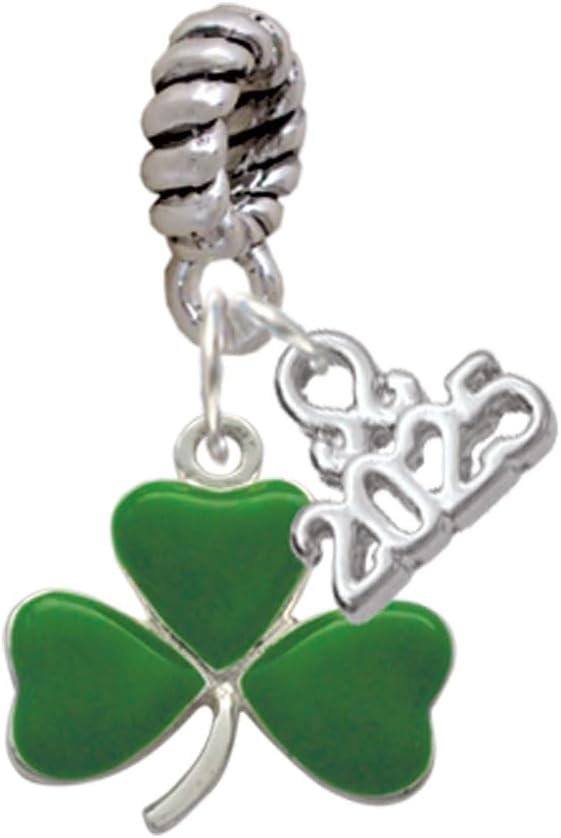 Silvertone Green Three Leaf Clover - Shamrock - Silver-tone Rope Charm Bead Dangle with Mini 2025. Charm size is approx. 0.6 x 0.54 x 0.1 inches (HxWxD) including loop. Silver-tone Triple Plated Twist Rope Bead Hanger is approximately 11.1 x 2.8 x 8.3mm (HxWxD) with a 4.3mm hole size. Mini Year 2025 Charm is approx. 0.34 x 0.4 x 0.07 (HxWxD) inluding loop. The rope twist charm bead dangle, featuring mini 2025 slides, is an exquisite addition to any bracelet or necklace. This versatile piece serves as both a charming bracelet accent and a striking necklace pendant, embodying the promise of wonderful experiences in 2025. Adorn yourself with this symbol of positivity and celebration, making it a perfect gift or personal keepsake for the year. Our jewelry is meticulously hand assembled in the USA, ensuring exceptional quality and craftsmanship. Each piece is created using carefully sourced imported components, resulting in unique designs that reflect both elegance and artistry. Perfect for any occasion, our collection offers a blend of sophistication and individuality, making it a cherished addition to your accessory wardrobe. EASE NOTE: Our products are not intended for children 14 years and younger.
