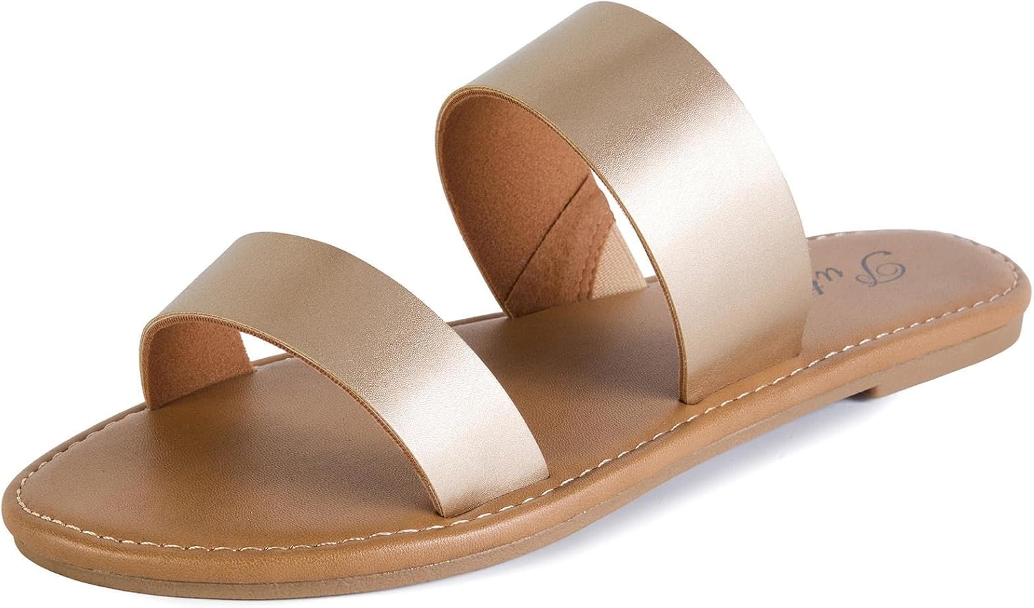 Putu Women's Two Strap Flat Sandals Casual Slide Sandals for Wide Feet