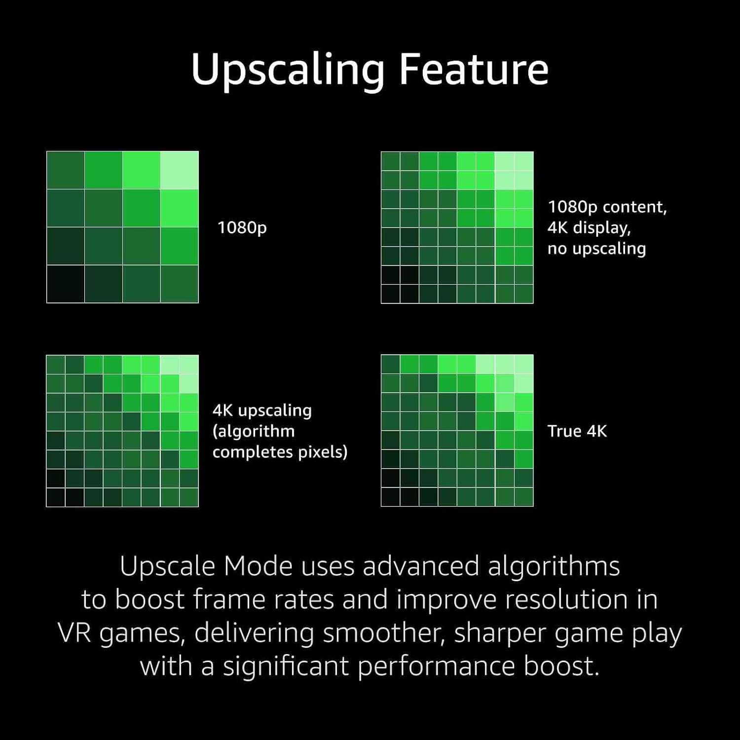 Enhanced Performance with Upscale Mode: The Upscale Mode feature enhances frame rates without sacrificing visual fidelity, making it perfect for users who want to push their VR experience to the next level, especially in graphically demanding games.