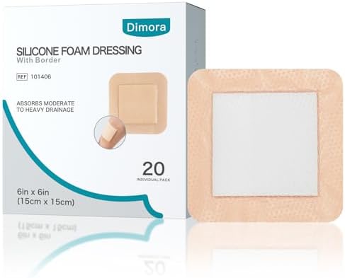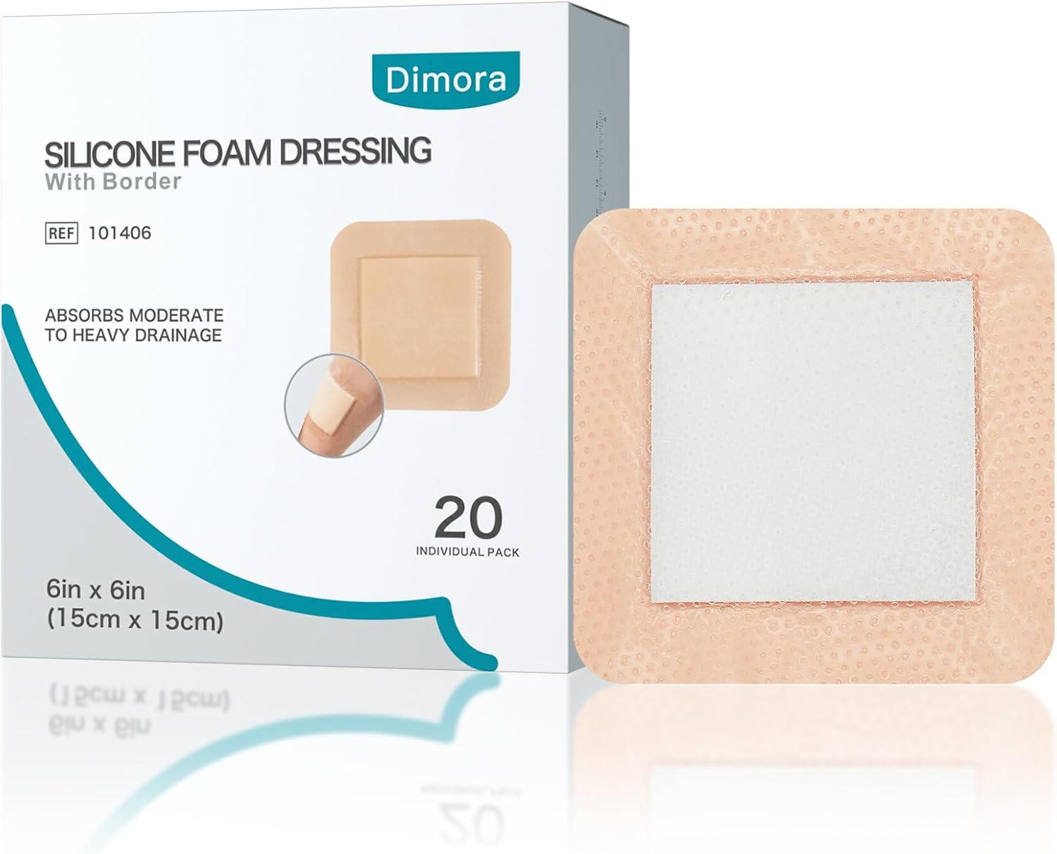 Dimora Silicone Foam Dressing with Border Adhesive 6"x6" Waterproof Wound Dressing Bandage for Wound Care 20 Pack