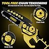 【Tool-Free Chain Tensioning】Say goodbye to frustrating, time-consuming adjustments! Our innovative dual-knob design on the side cover makes chain tensioning a absolute breeze – no tools needed! Simply loosen, adjust, and tighten. It's that easy.Plus, the superior stability of the brushless motor means significantly less vibration, which in turn keeps the chain from loosening during use.Spend more time cutting, and less time on maintenance.
