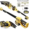 【Flexible Control: 4-9ft Pole & 180° Head】Take full command of your landscape.The sturdy telescopic pole saw effortlessly extends from 4 to 9 feet, while the head pivots a full 180°,allowing you to precisely position the cutter for any angle.Reach overhead branches or tame hard-to-reach growth with ease.Paired with the consistent, unwavering power of the brushless motor, this tree trimmer pole saw powers through the cut without stalling, even at the most awkward angles.