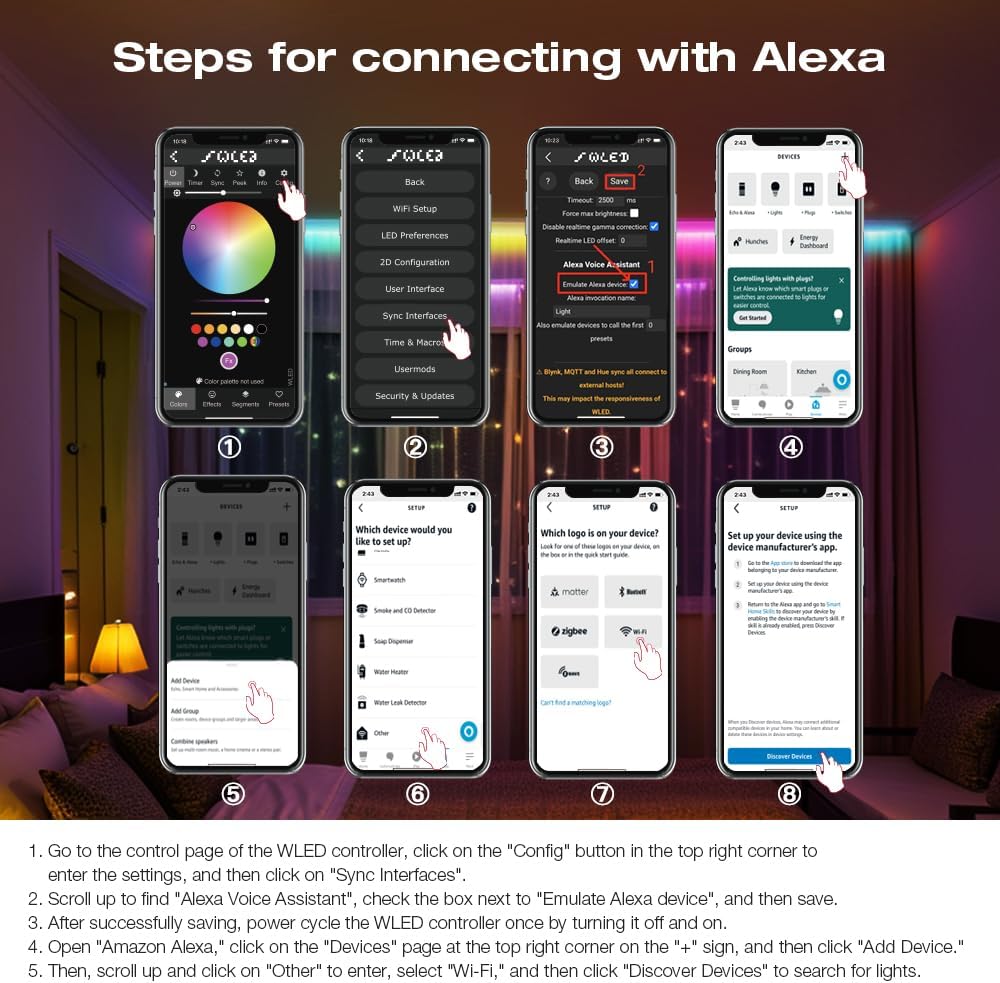 🌟Wireless control and no need for a gateway: Through the dedicated wled app, users can directly control the lights on their smartphones without additional gateway devices, simplifying the installation and usage process.