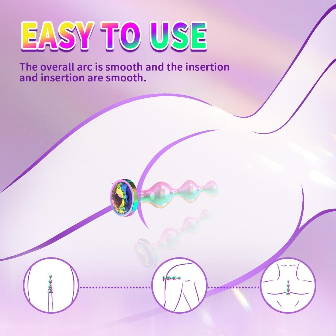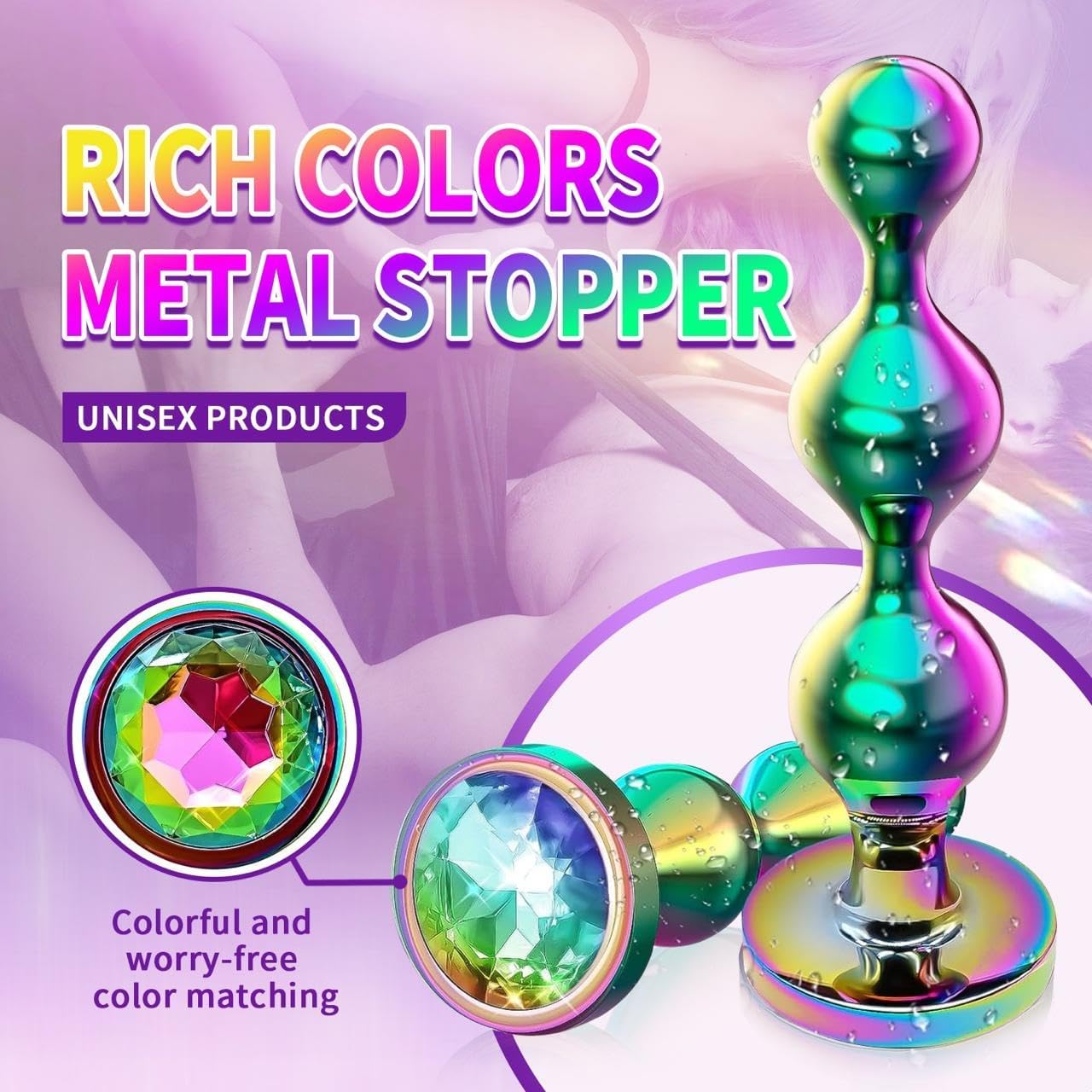 3 Piece Anal Butt Plug Eyes and Rainbow Bead Metal (Rainbow Metal)