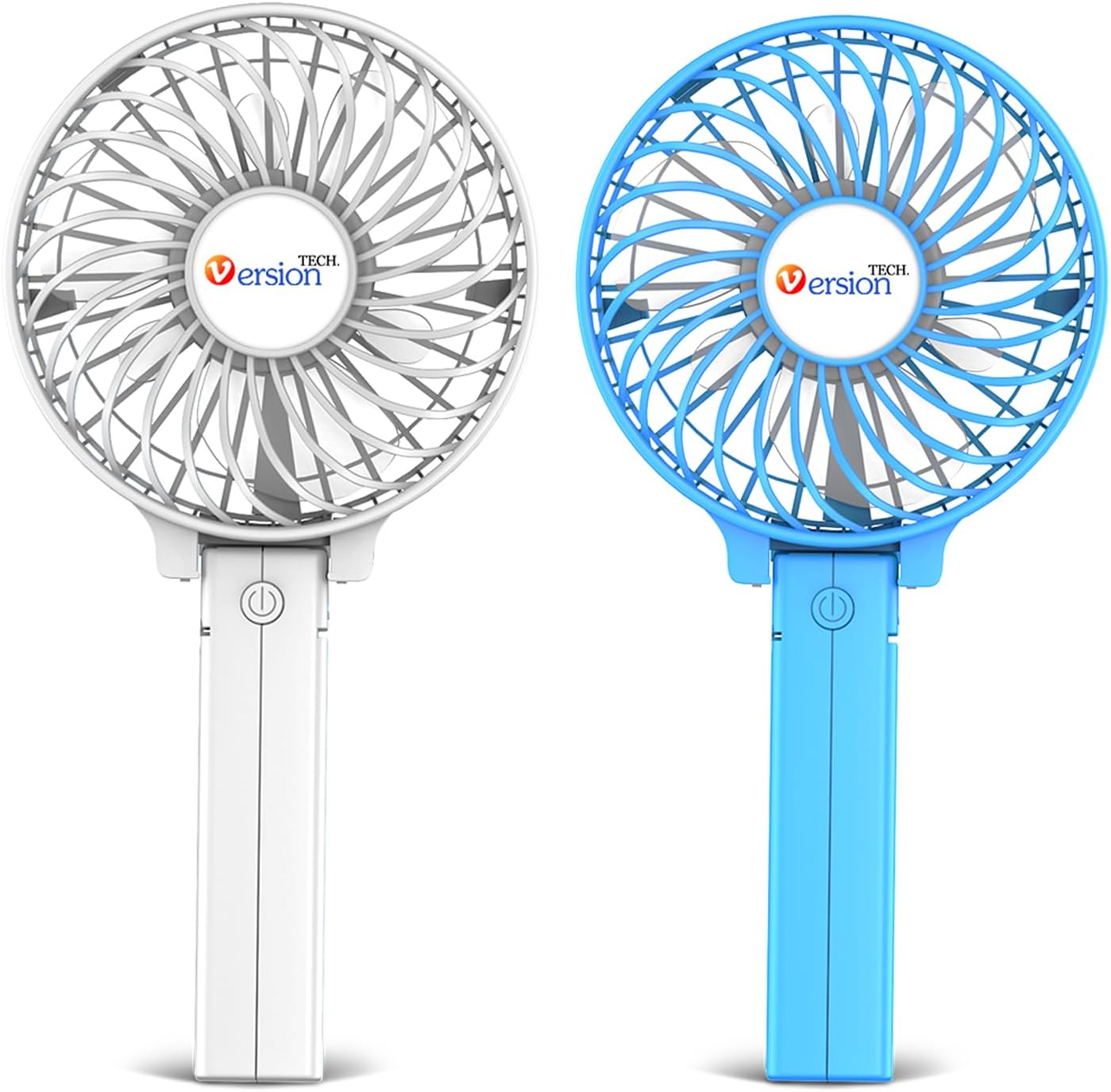 VersionTECH. Portable Handheld Fan 2Pack, White+Blue Powerful 180° Foldable Rechargeable Clip Fan with 3 Speeds