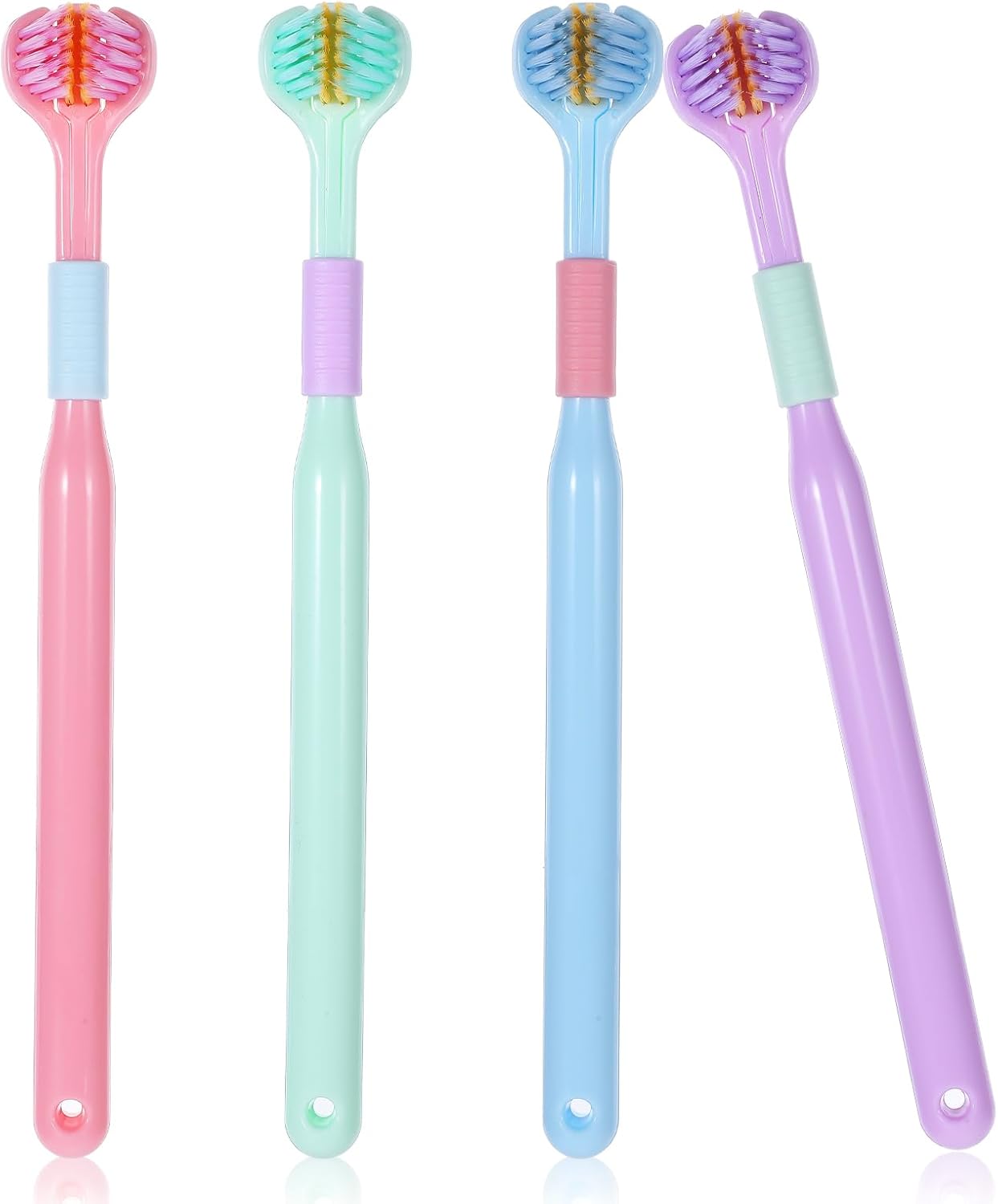 4Pcs 3 Sided Toothbrush Adult, Deeply and Thoroughly to Clean Teeth and Gums Colorful Soft Bristle Three Sided Toothbrush Set for Adults Teeth Gum Care