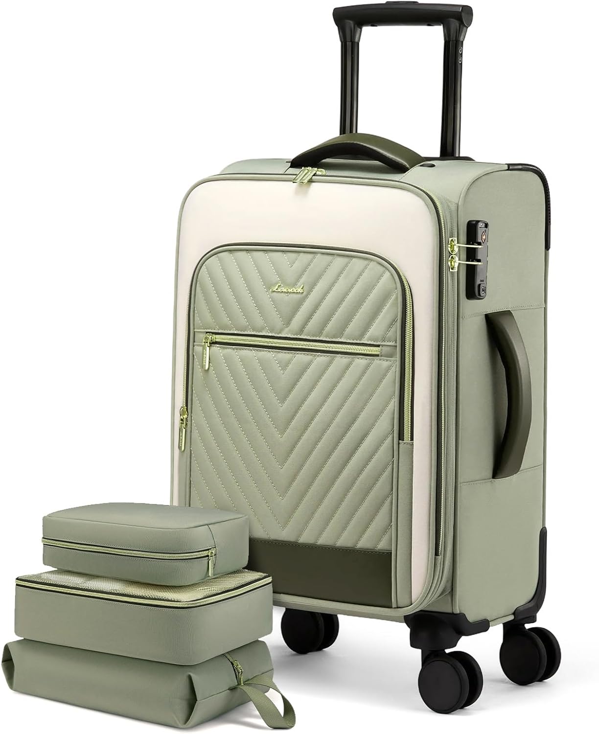 LOVEVOOK Carry On Luggage 22x14x9 Airline Approved,20 Inch Carry-on Suitcase for Women,Softside Suitcases with Wheels,Rolling Checked Luggage with TSA Lock,Lightweight Travel