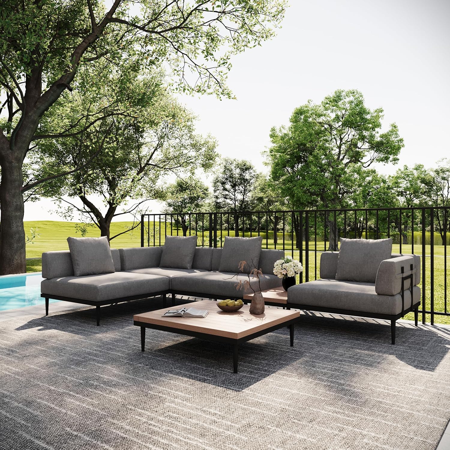 Acanva Modular Outdoor Patio Sectional Sofa, All-Weather Free Combination L-Shaped Balcony Couch with Side Table, Grey, 4 Seater + 1 Side Table