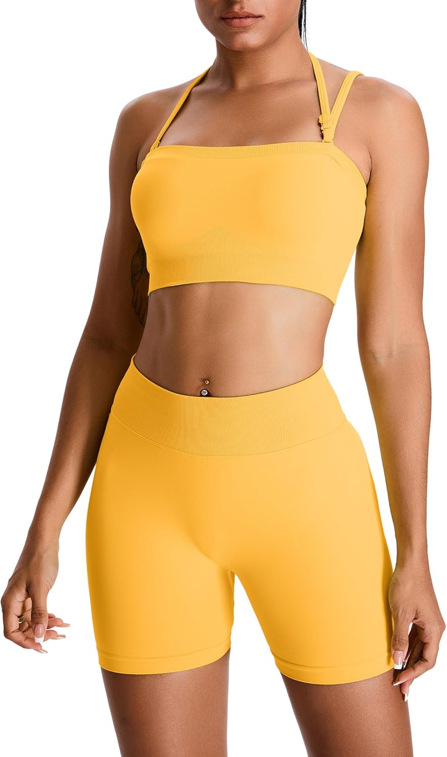 ABOCIW Womens Workout Sets Seamless High Waist Scrunch Butt Shorts Removeable Strap Bandeau Sports Bra Gym Set