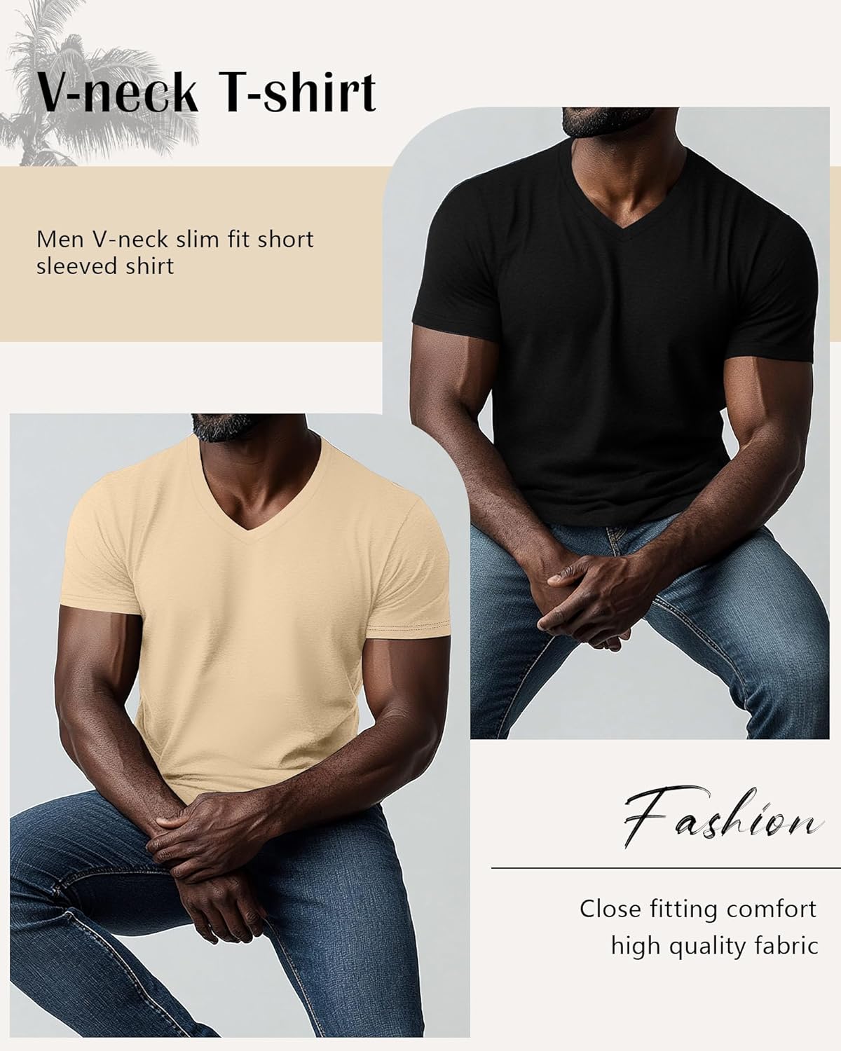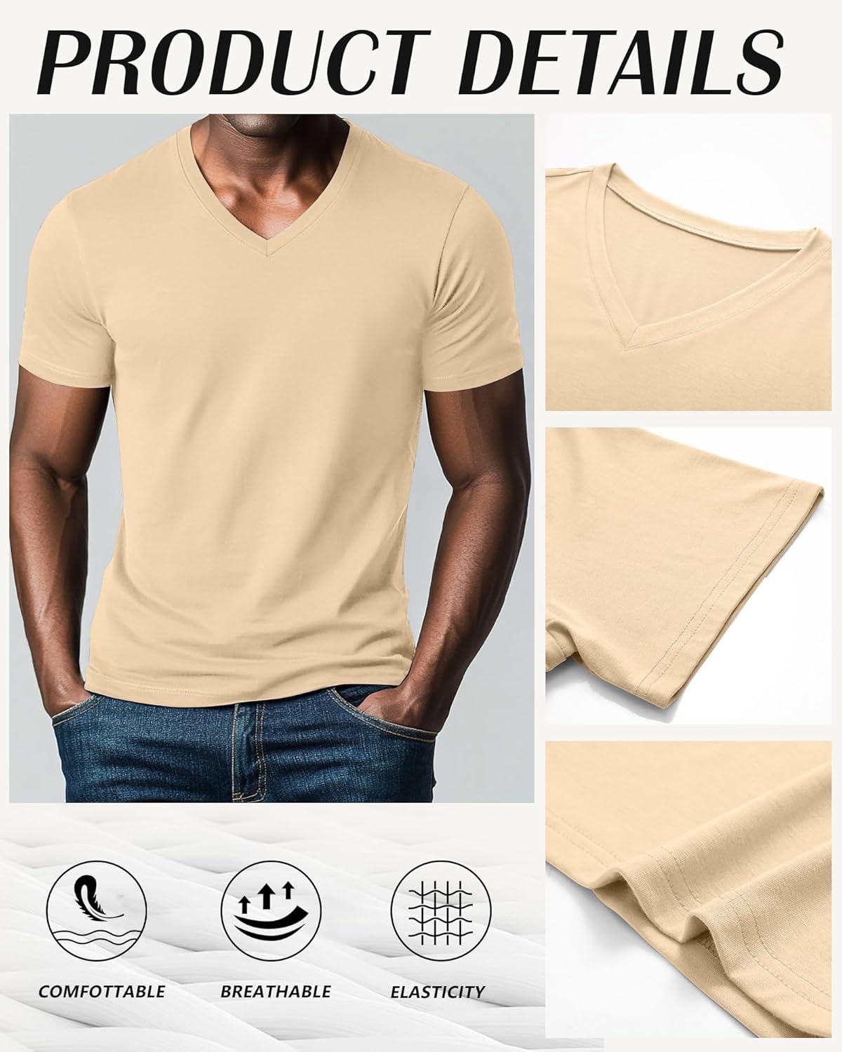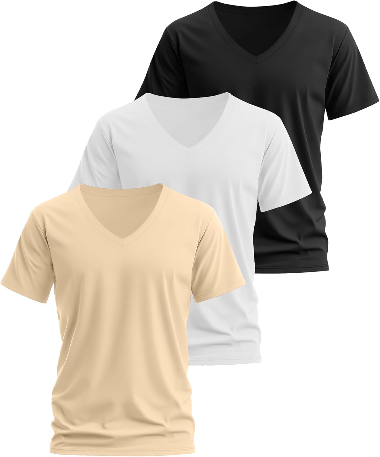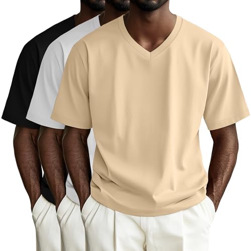 3 Pack Men's Big and Tall T-Shirts, V Neck Cotton Short Sleeve Tees Summer Shirts Basic Slim Fit Tops