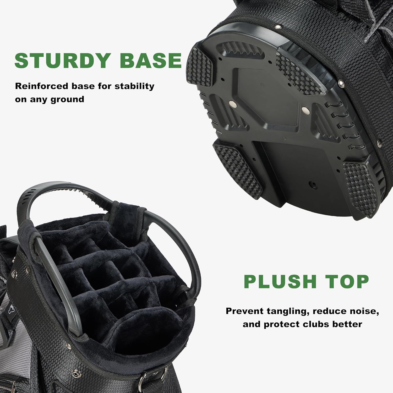 14-Way Plush Top: This golf cart bag features a premium plush top and 14-way full-length dividers to prevent club tangling, reduce noise, and provide superior protection for your golf clubs