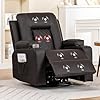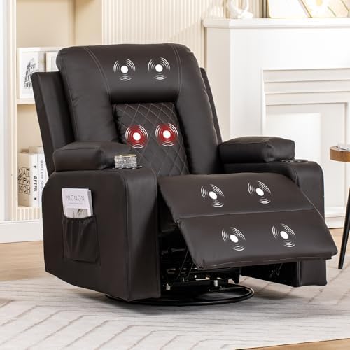 COMHOMA Recliner Chair, Rocker Recliners for Adults, Swivel Reclining Chair with Massage and Heat, Manual Rocking Chair with Cup Holders and Side Pockets for Living Room,Brown