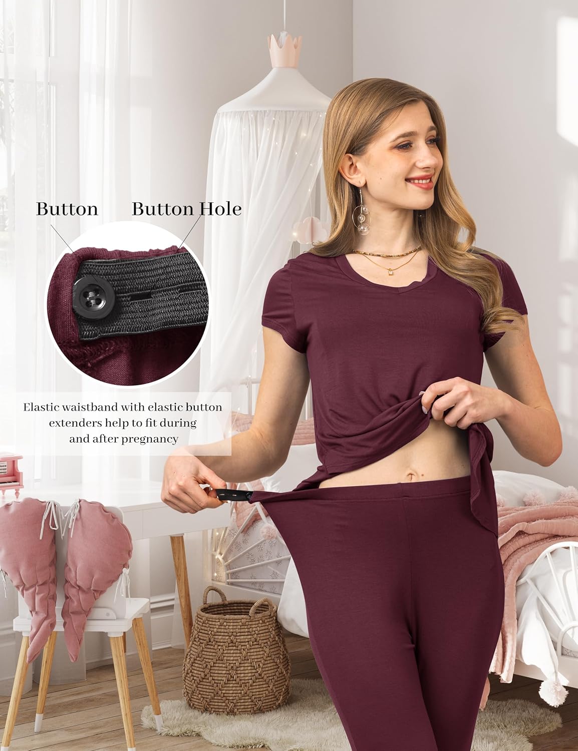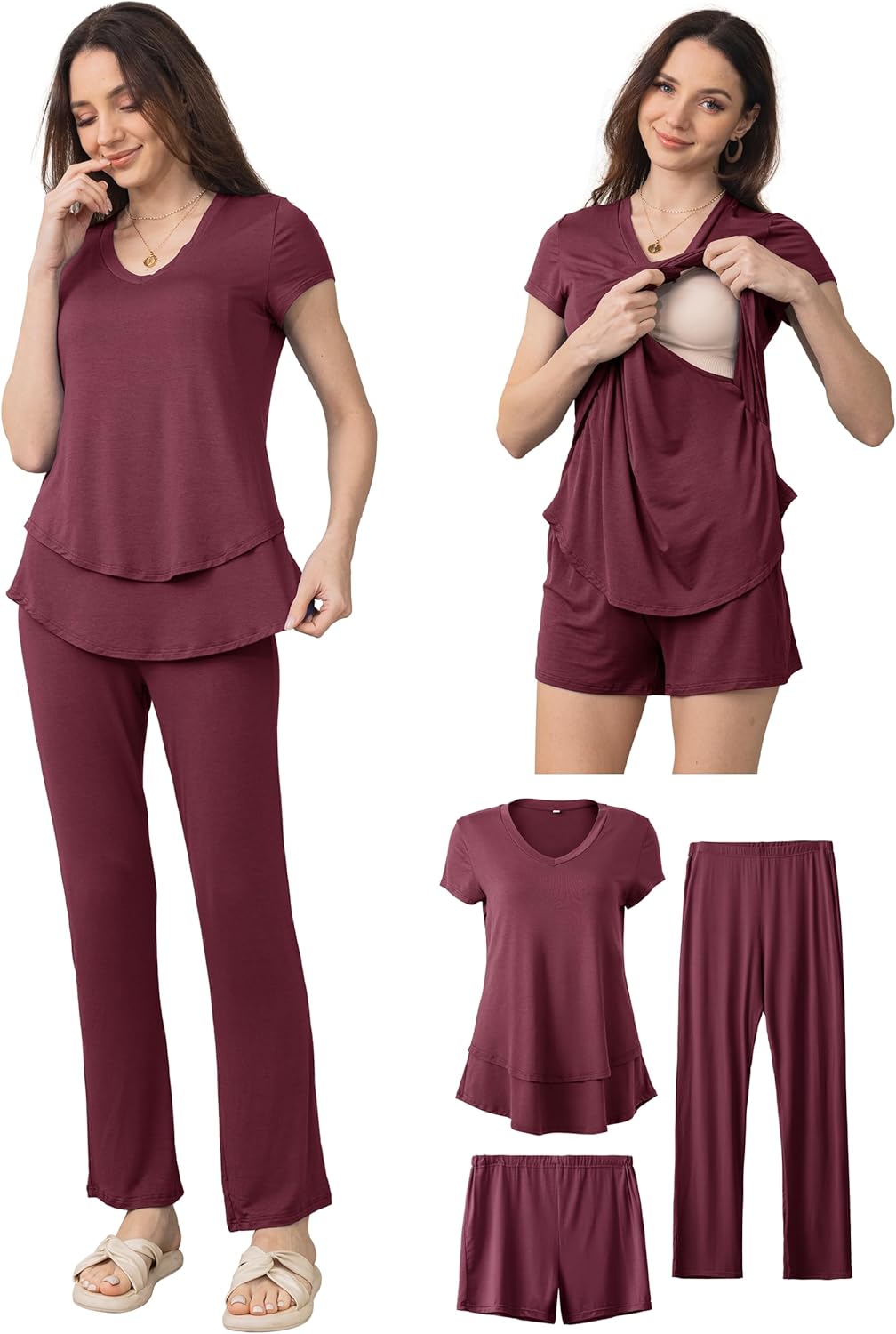 SUNNYBUY 3 PCS Maternity Breastfeeding Pajamas Set, Hidden Nursing Tops, Adjustable Pregnancy Shorts & Pants Postpartum PJS