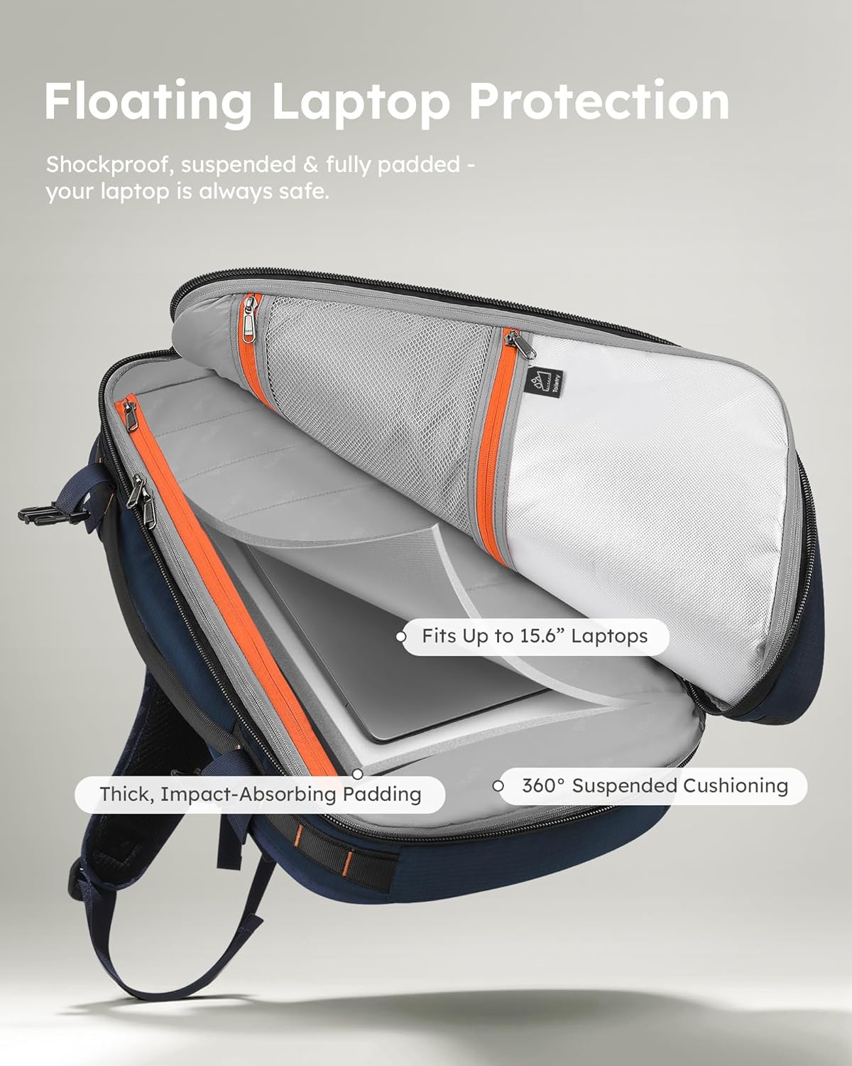 【Quick Laptop Access & Shockproof Protection】Your tech deserves better protection. This laptop backpack features a shock-absorbing, suspended laptop sleeve (fits up to 15.6") to guard against bumps and drops. The side-access design lets you grab your laptop fast, ideal for commuters, students, or professionals always on the move