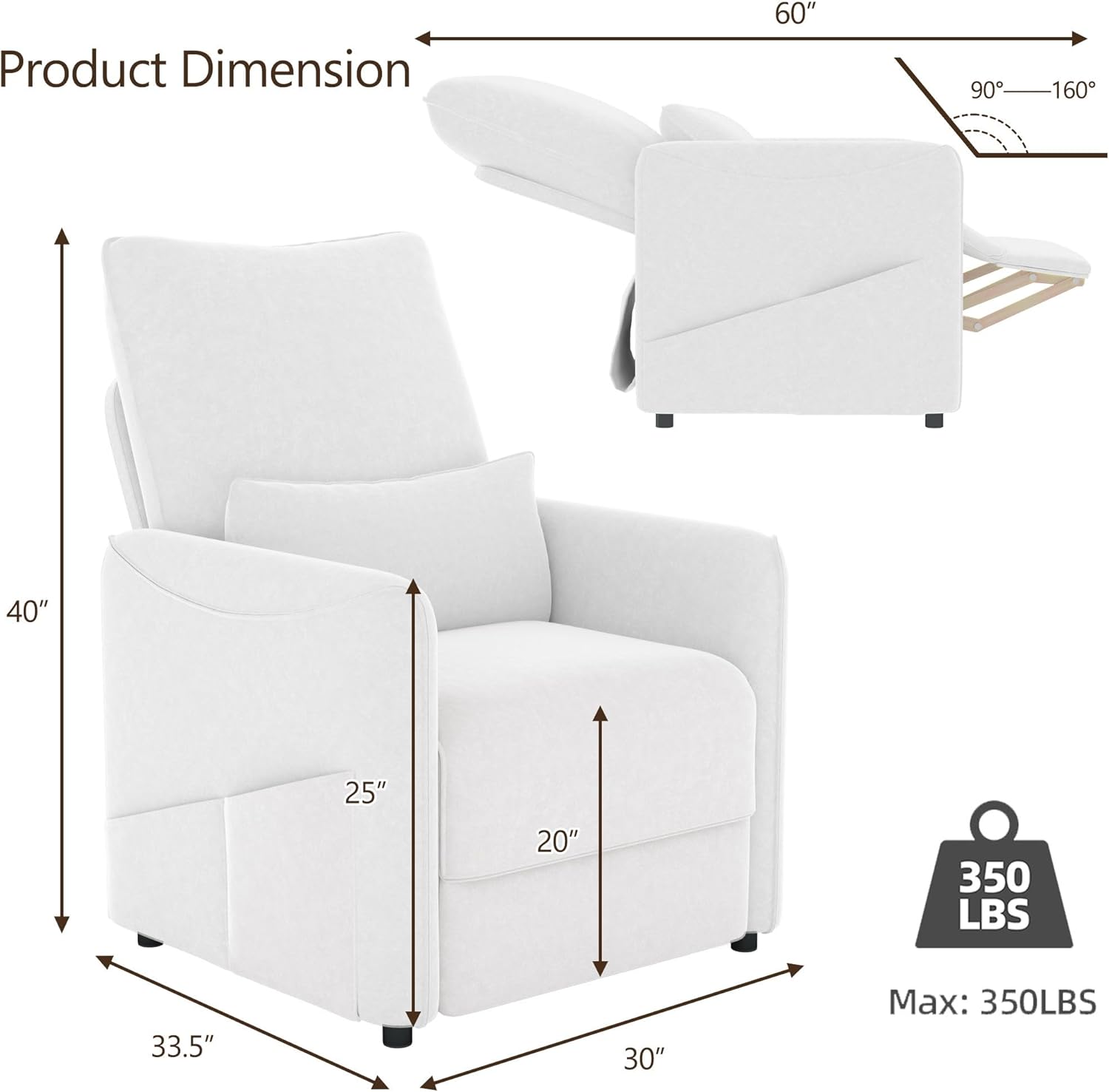 Versatile: This modern recliner features a clean, minimalist design that seamlessly fits into any space. Ideal for casual conversations in the living room, relaxing in the bedroom, reading in the study, or working in the office, it offers both style and functionality in any setting