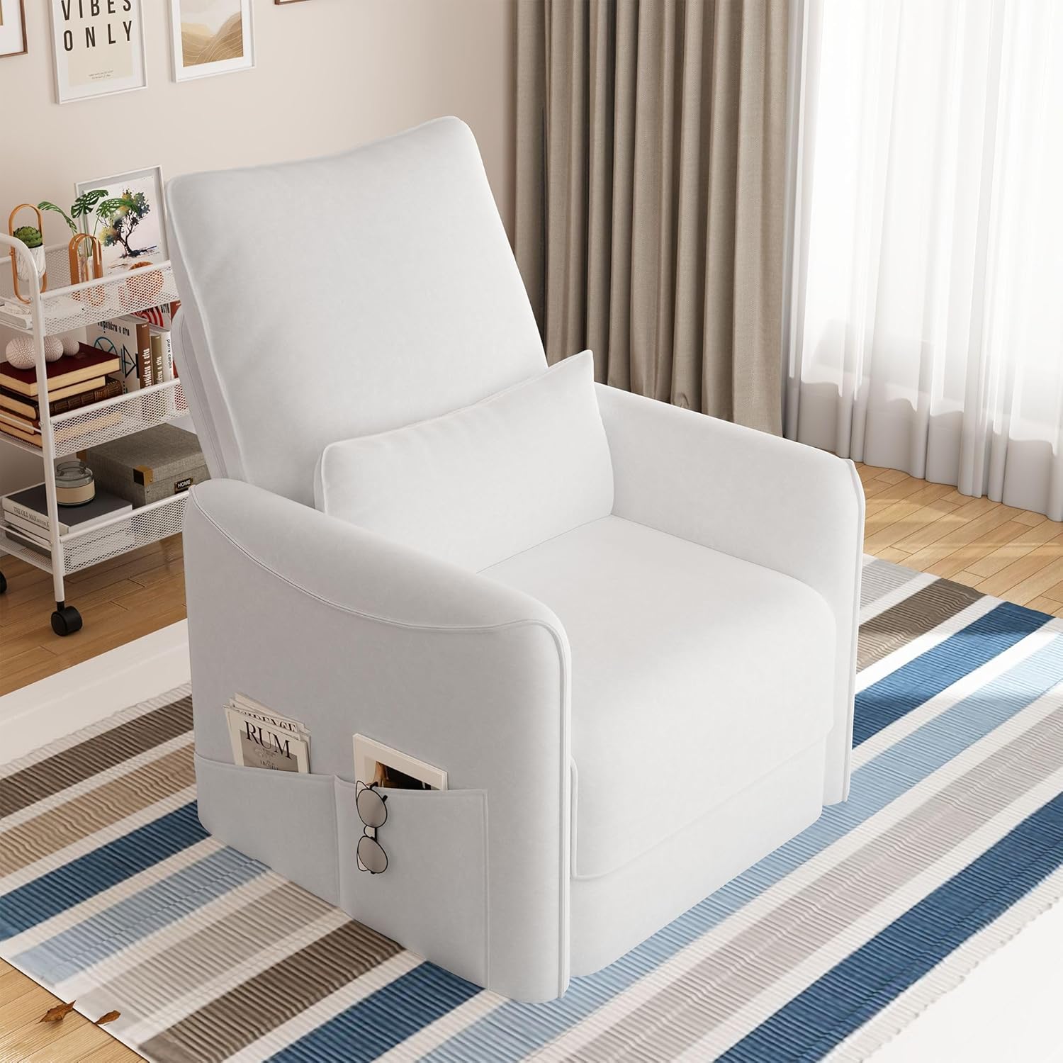 Power Recliner Chair for Adults, Modern Electric Reclining Sofa Chair with Lumbar Support for Living Room, Bedroom, Beige White