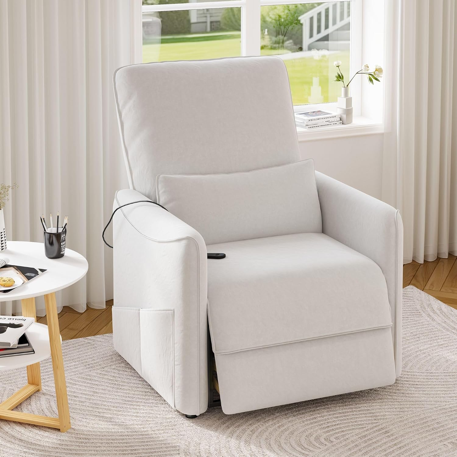JFHID Power Recliner Chair for Adults, Modern Electric Reclining Sofa Chair with Lumbar Support for Living Room, Bedroom, Beige White