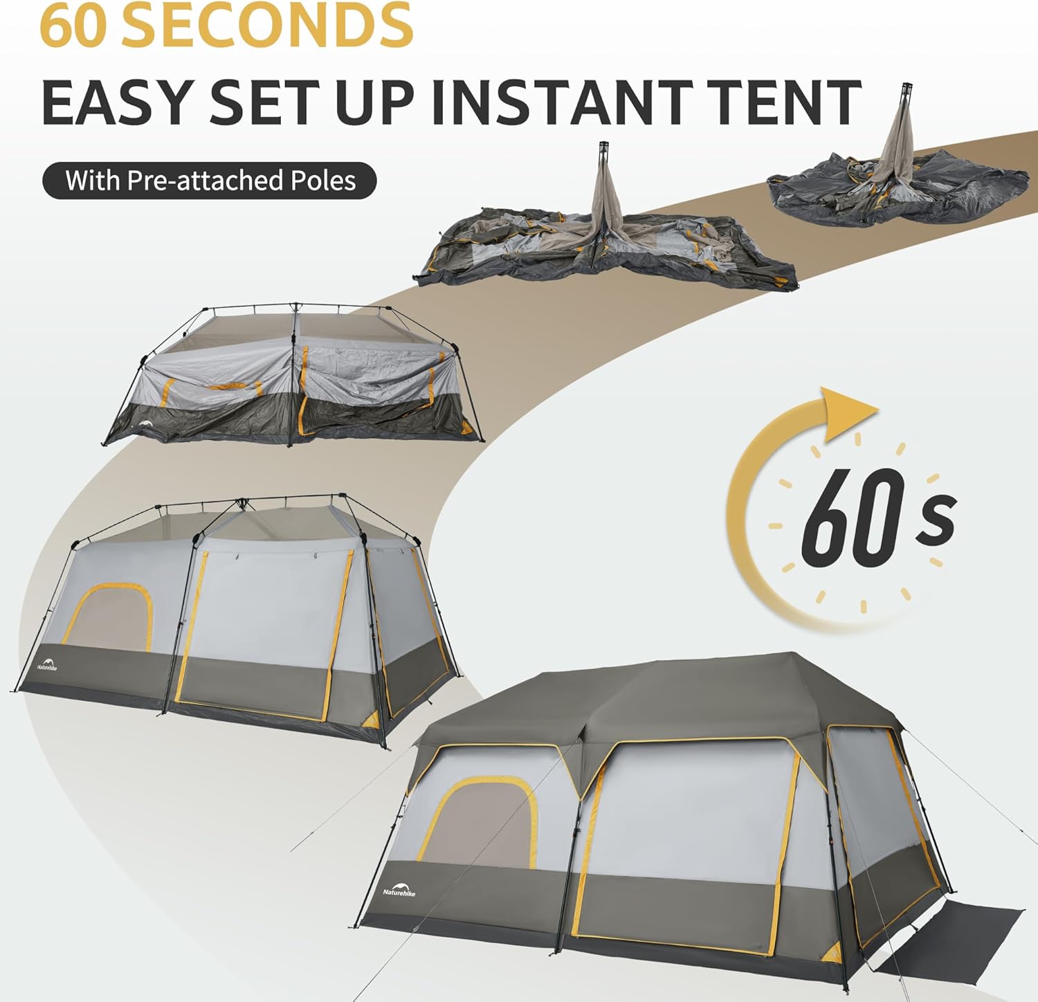 Naturehike Cape 4/6/8 Person Camping Tent, 60S Easy Setup Instant Tent Pop up Tent, Waterproof Large Tall 6/8 Person Tents for Camping, Car Camping
