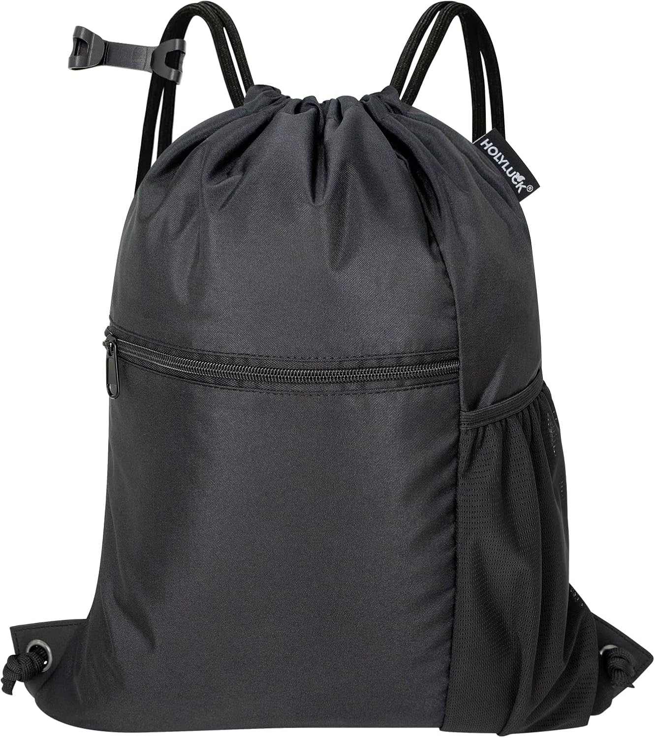 HOLYLUCK Men & Women Outdoor Sport Gym Sack Waterproof Drawstring Backpack Bag -black