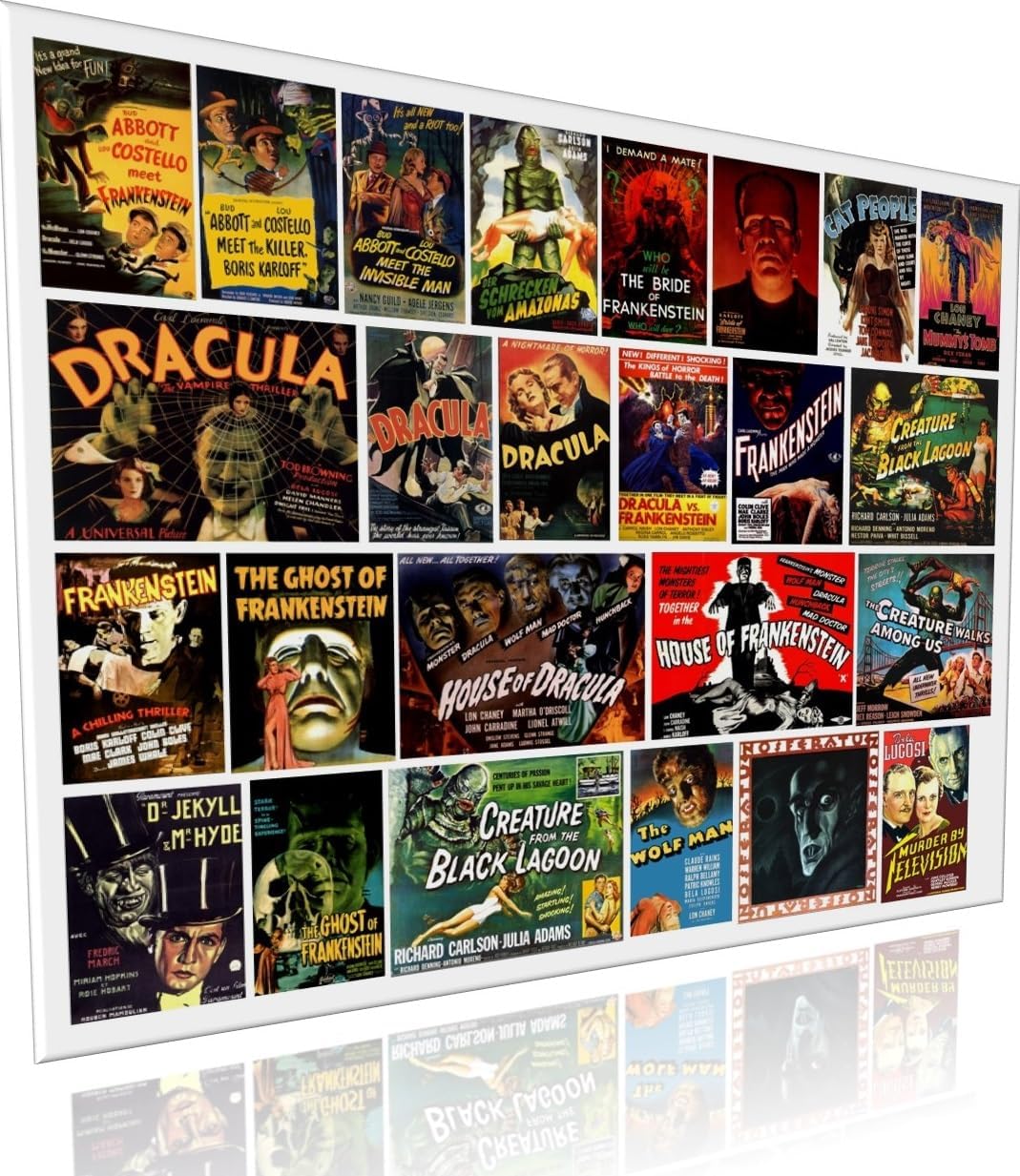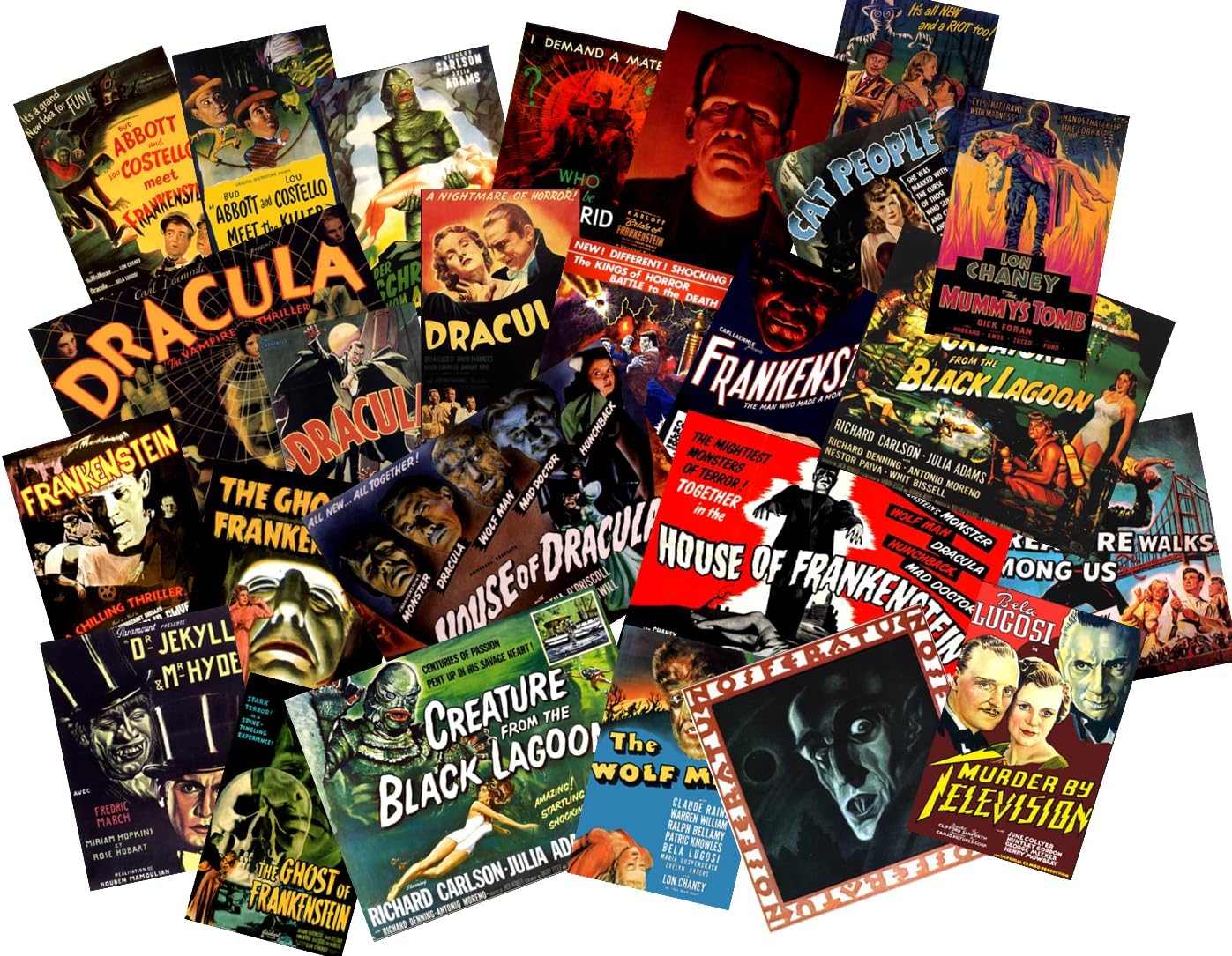 Set of 25 peel & stick stickers showing vintage Universal Monsters and other movie posters. These are stickers, not gummed lick & stick.