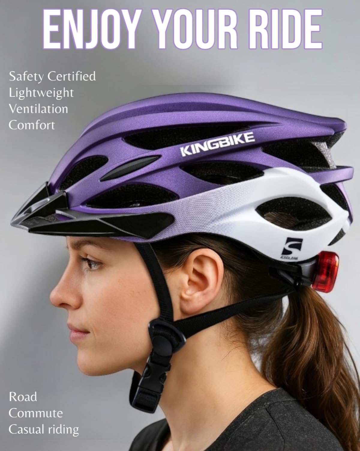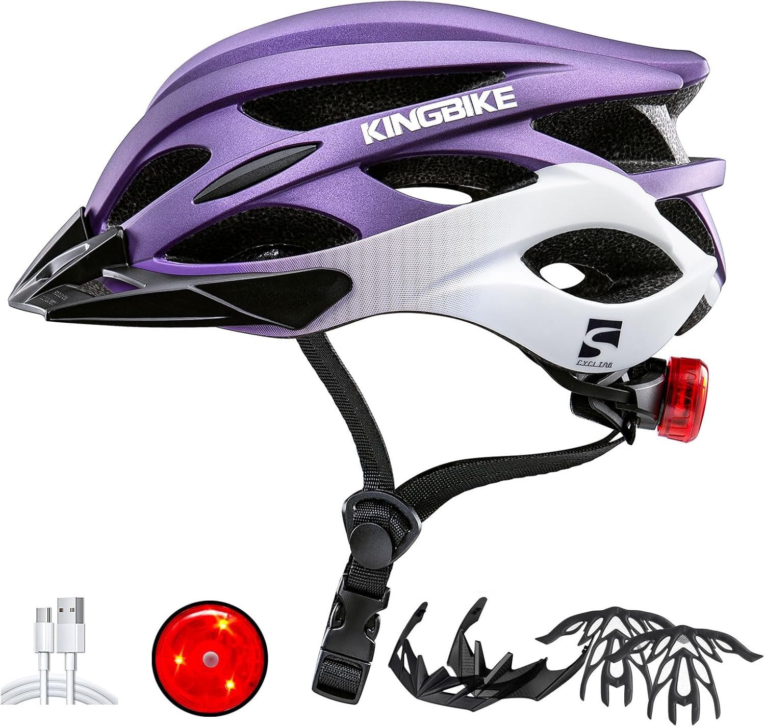 KINGBIKE Bike Helmet for Adult Men Women Youth Road Commute Mountain Cycling Helmets with USB Rechargeable Light Replaceable Padding and Visors Lightweight 20.4-23.6in