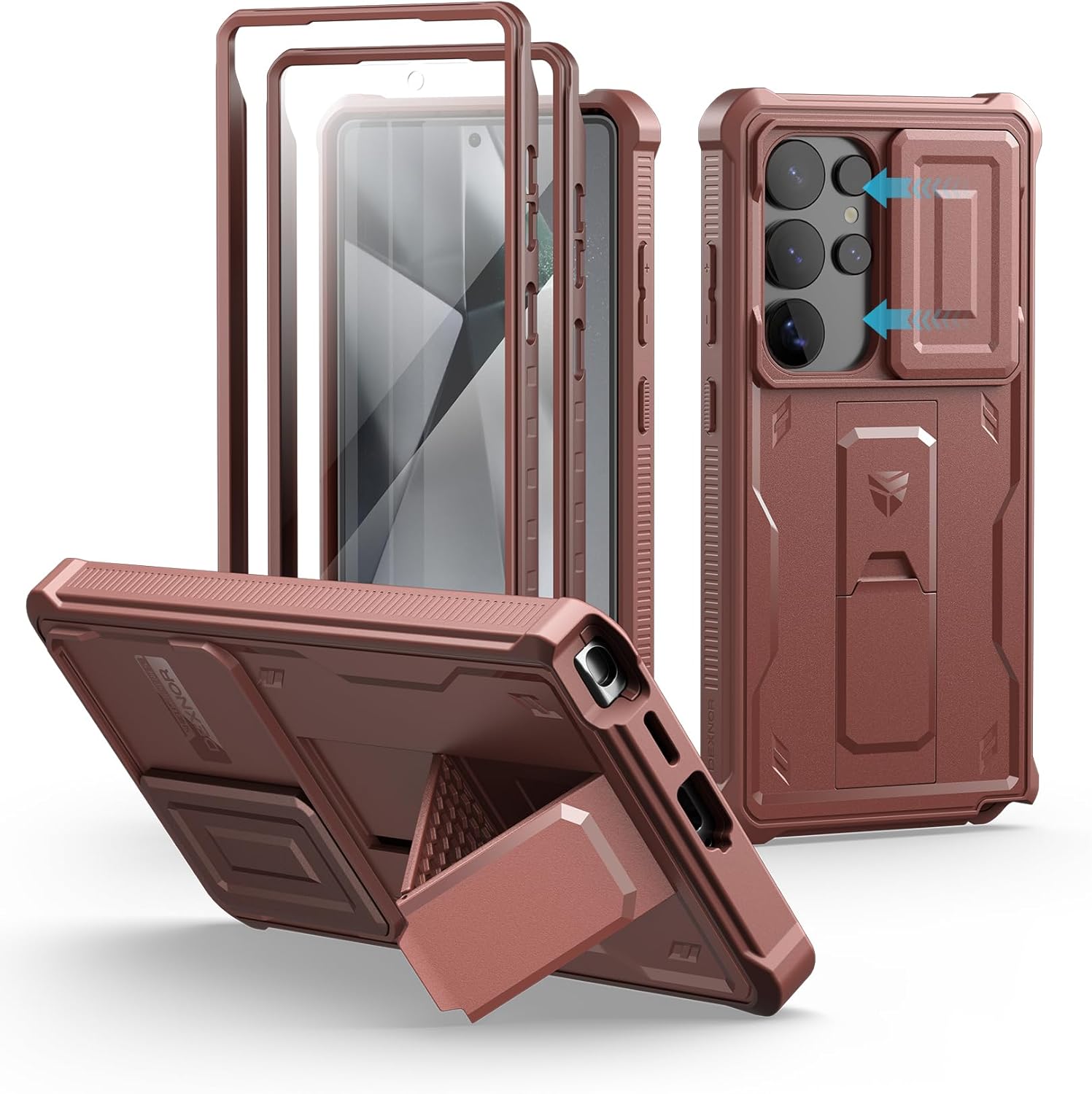Dexnor for Samsung Galaxy S25 Ultra Case with Built-in Slide Camera Cover & Screen Protector & Kickstand,Heavy-Duty Shockproof Rugged Case Full-Body Bumper Cover for Galaxy S25 Ultra(2025),Maroon Red