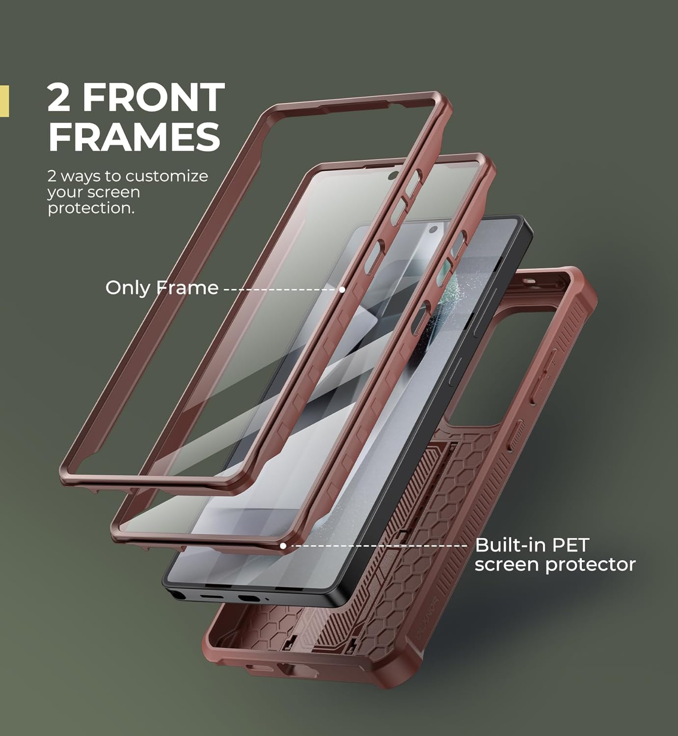 Select from 2 front frames: Enjoy double-layered screen protection with our case's built-in PET screen protector or your own, complemented by raised edges for enhanced defense against scratches and spills, ensuring your screen stays pristine in any situation.