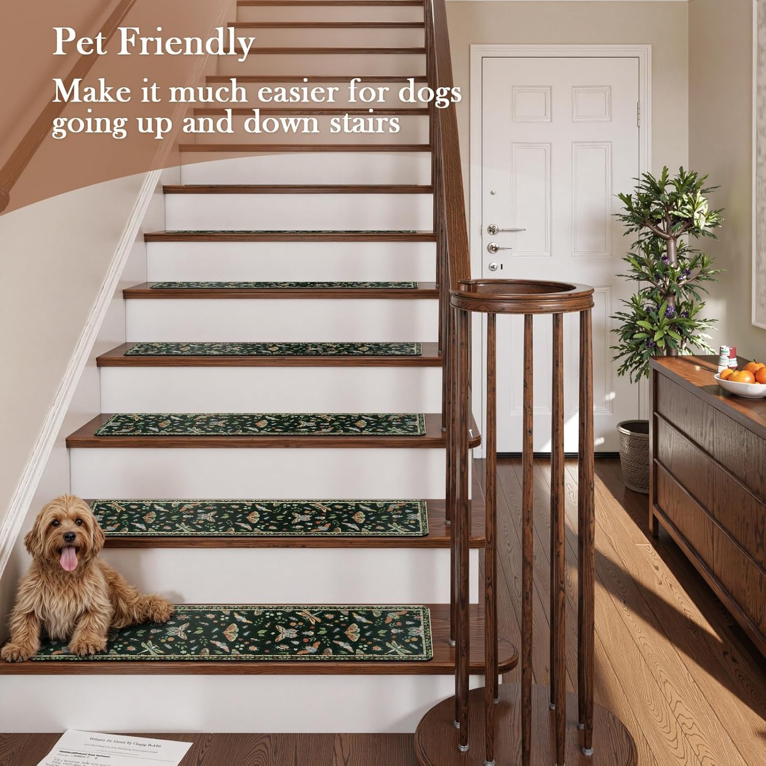 Safer, Quieter & Prettier: Our stair treads for wooden steps make going up and down the stairs easier and safer for kids, the elderly, and pets; help soften the sounds of creaky wooden stairs; decorate normal dull staircases, protect the paint of the wooden pedal and prevent scratches