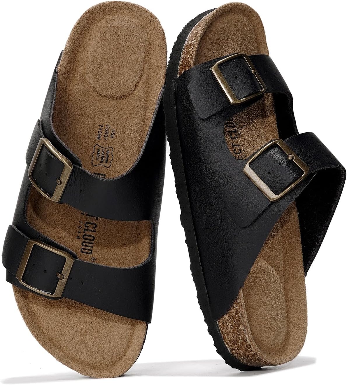 Project Cloud Genuine Leather Flat Sandals Women 2025 Beach Essentials Womens Sandals Memory Foam Vacation Essentials Slides for Women Footwear (Venita)