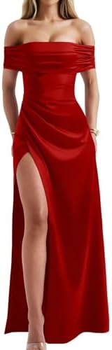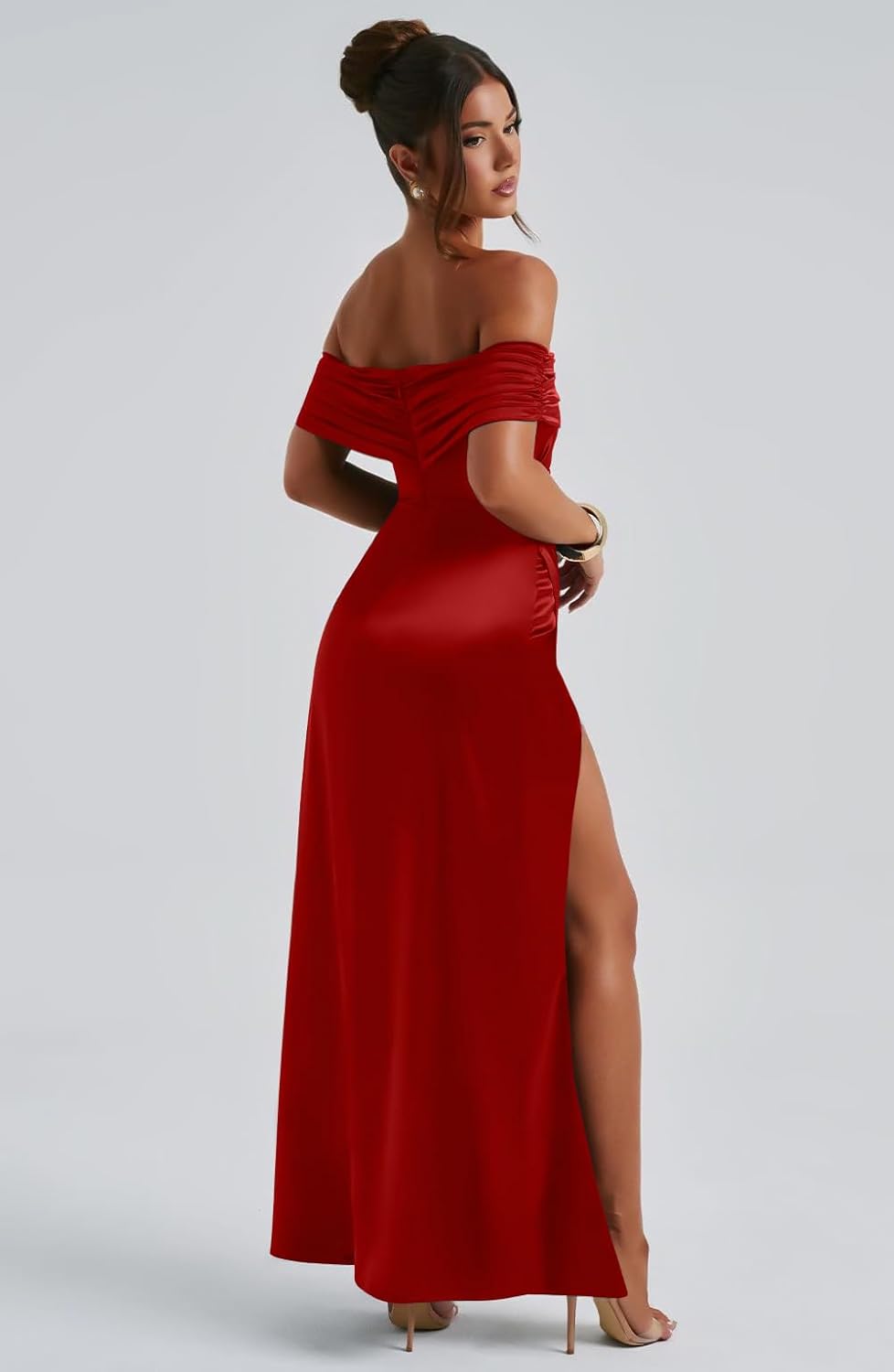 Memoriesea Women's Elegant Off Shoulder High Split Bodycon Evening Wedding Maxi Dress