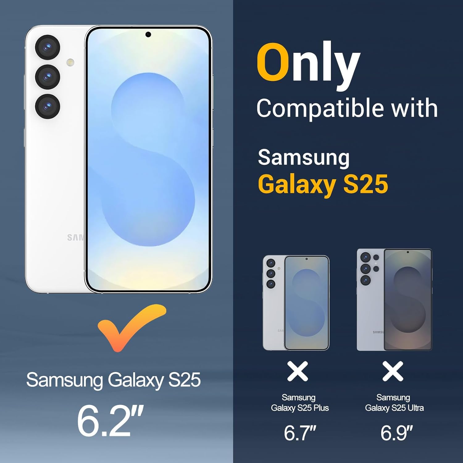 【Military Grade Drop Protection】 The Samsung Galaxy S25 case features extra cushioning on all four corners, the backplane is made with rigid polycarbonate and flexible shockproof TPU bumpers around the edges, to protect your phone against accidental falls and bumps, providing tough protection. It is certified to exceed Military Grade Drop Test standards and survive drops of up to 15FT.