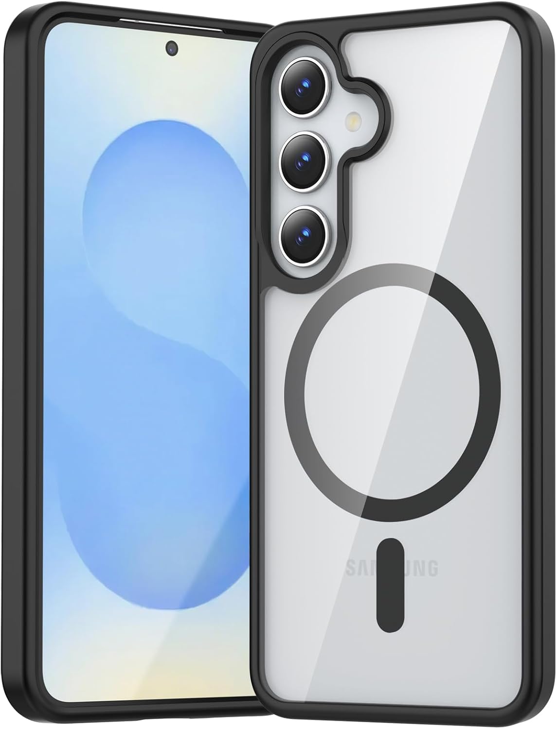Temdan for Samsung Galaxy S25 Case, [Compatible with Magsafe][Anti-Yellowing][Military-Grade Protection] Shockproof Slim Phone Sleeve for Samsung Galaxy S25-Clear Black