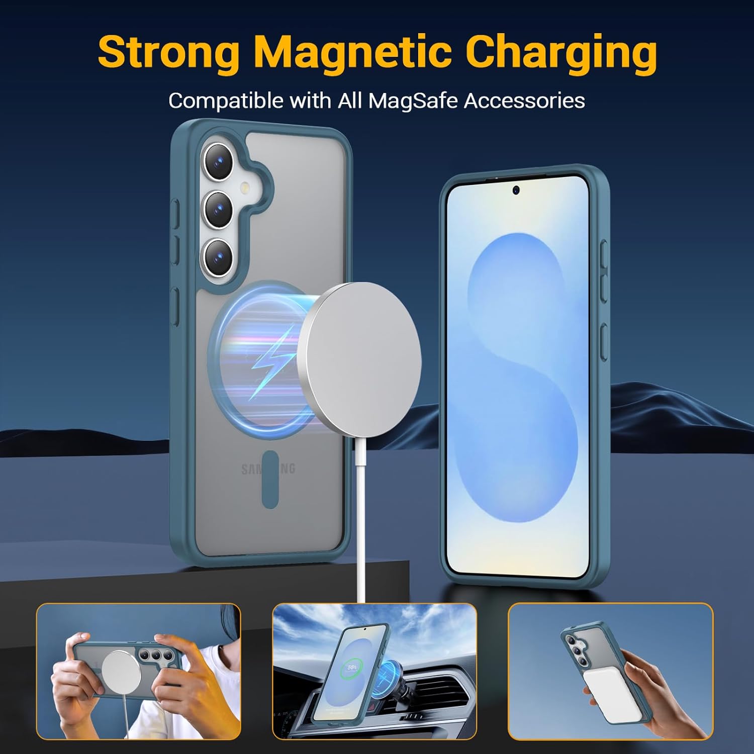 【Compatible with MagSafe】 Temdan Samsung Galaxy S25 case made of 38 upgraded powerful N52 magnets, the built-in magnetic ring strengthens the connection to be compatible with all MagSafe accessories. The perfectly aligned magnets enable faster and easier wireless charging than ever before.