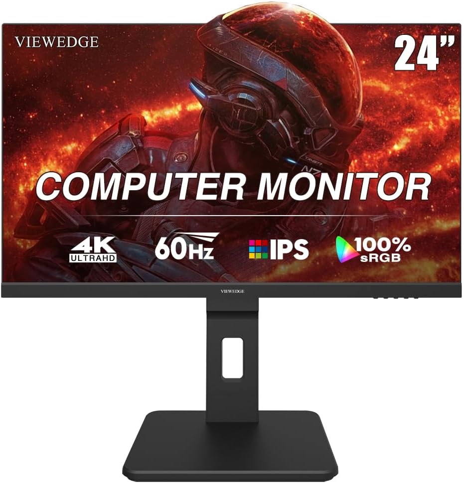 【24" UHD 60Hz Monitor】Viewedge 24 inch 60Hz 2160p professional monitor utilizes a IPS panel with contrast ratio of Millions: 1, 178-degree viewing angle, HDR 10, and 5 ms responsive time. The computer monitor provides the ultimate visual experience.