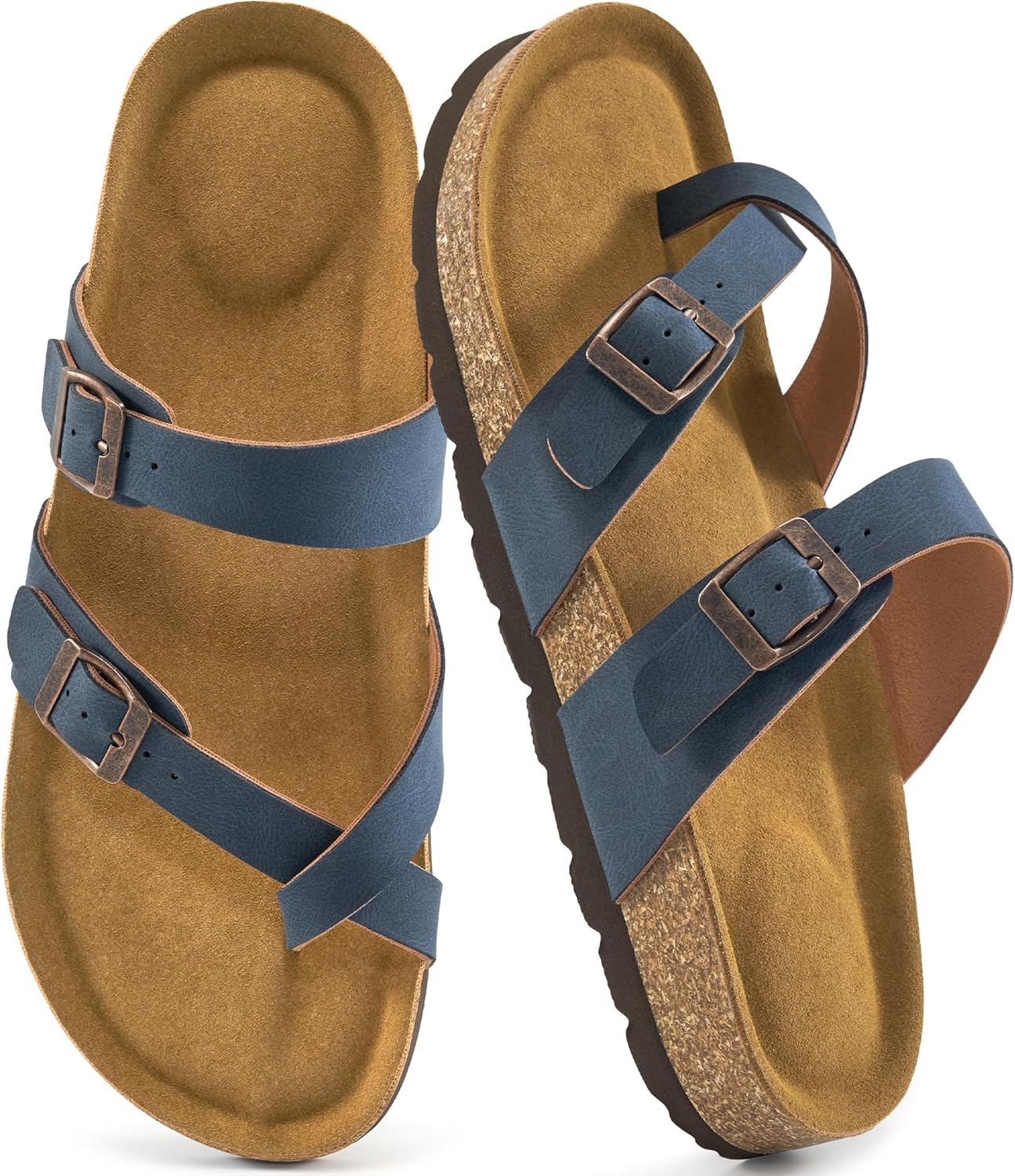 Ablanczoom Comfortable Sandals Womens Slides: Cork Footbed Beach Summer Women Sandal Shoes with Adjustable Buckle