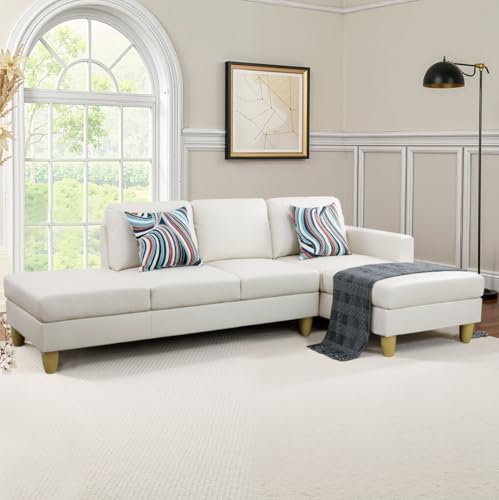 NicBex Sectional Couch 2 Pieces Sofa Set with Left Chaise Faux Leather L Shaped Cloud Couch for Living Room Furniture Sets with High-Quality Frame, Modular Sofa for Living Room & Apartment, White
