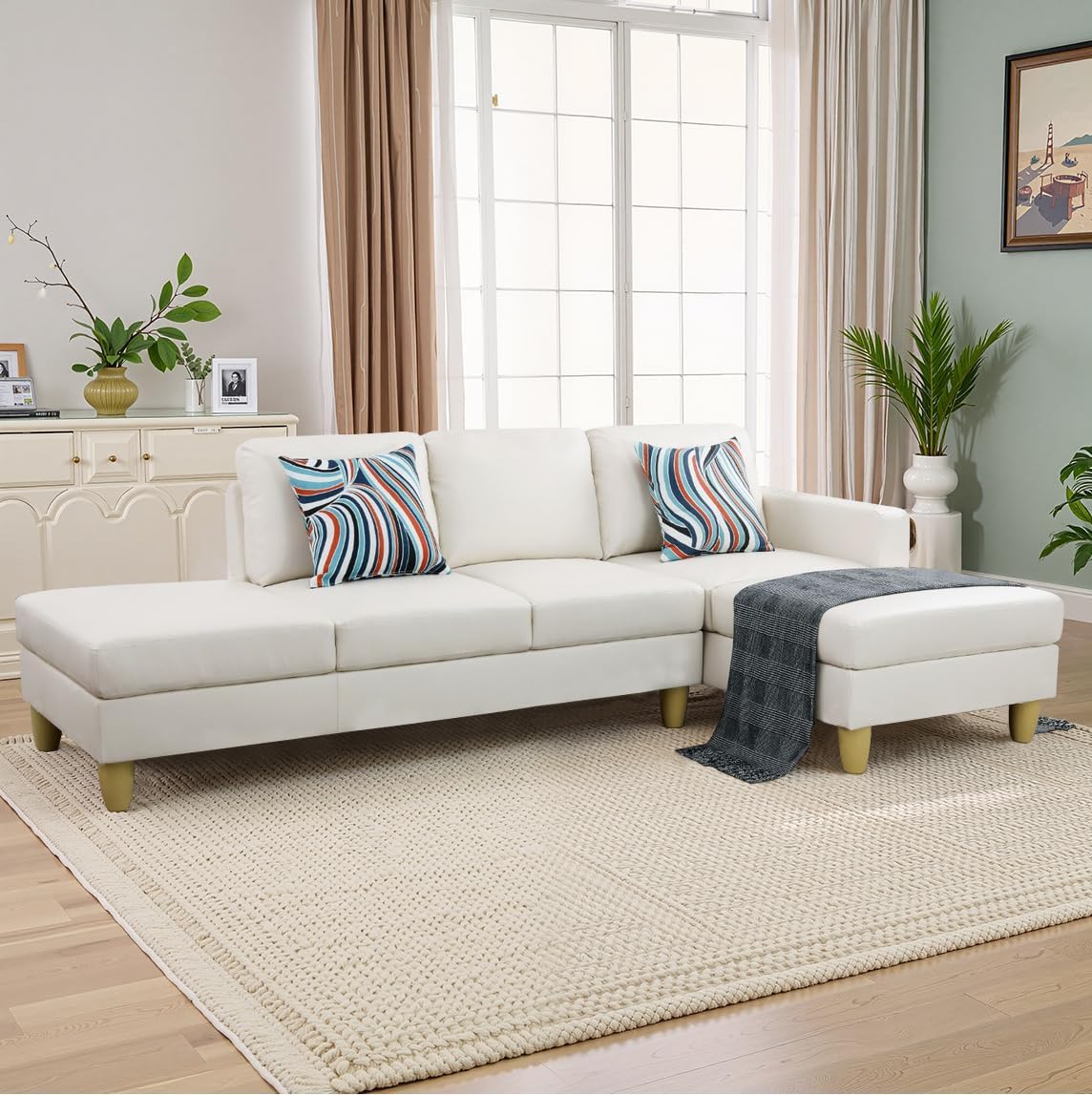 NicBex Sectional Couch 2 Pieces Sofa Set with Left Chaise Faux Leather L Shaped Cloud Couch for Living Room Furniture Sets Frame, Modular Sofa for Living Room & Apartment, White