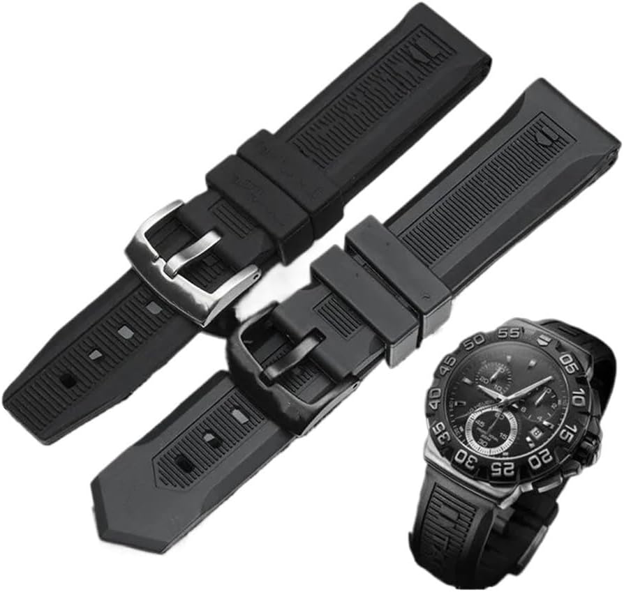 Smooth Silicone Rubber Watchband 20mm 22mm Black Soft Pin Clasp Strap Fit For TAG Heue Aquaracer Watch