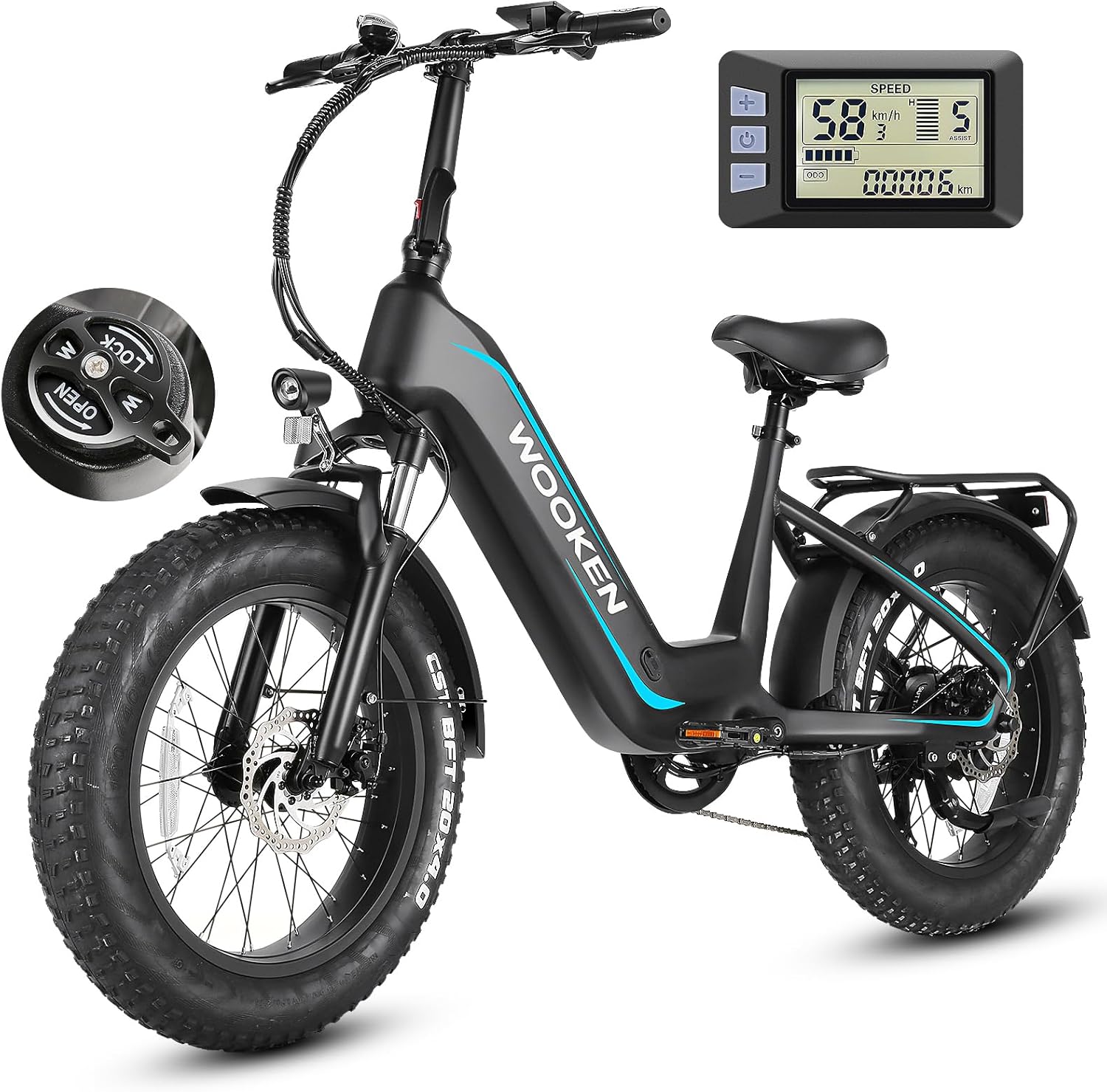Wooken Electric Bike for Adults, Peak 1000W Motor Ebike,20"x4.0" Fat Tire Electric Bike,48V 624WH Removable Lithium-ion Battery,Up to 60 Miles,Step-Thru Electric Mountain Bike,SGS Certified to UL 2849