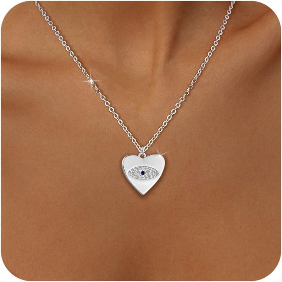 BERISO Gold Chunky Necklaces for Women 14K Gold/Silver Plated Chain Toggle Clasp Necklace Dainty Heart Pendant Paperclip Necklace Evil Eye Choker Necklace For Women