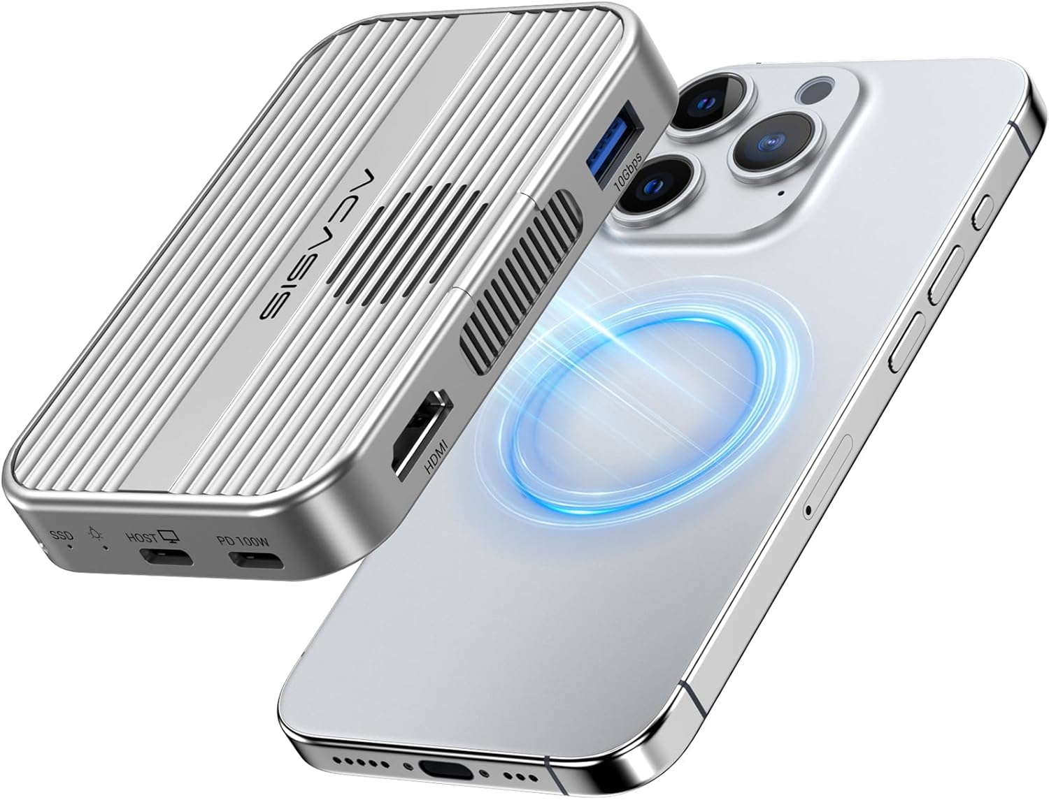 ACASIS 10Gbps Magnetic M.2 NVMe SSD Enclosure & USB C Docking Station with Cooling Fan for iPhone 17/16/15 Pro/Pro Max/Plus,Tool Free Installation,Support SSD Size 2230/2242/2260/2280 B+M M-Key