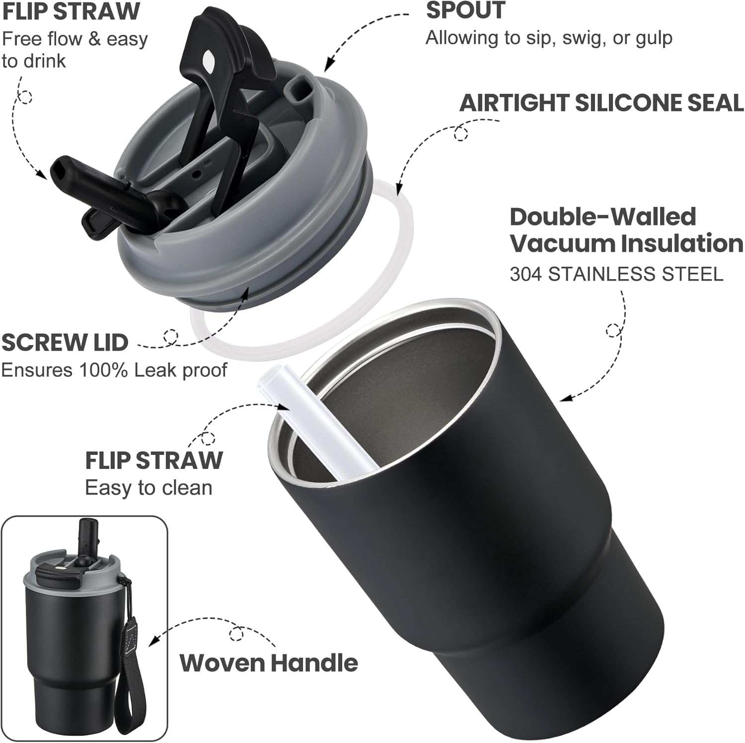 14oz Dual Drinking Spout Kids Insulated Water Bottle: This toddler water bottle is double vacuum insulated to keep drinks warm for up to 8 hours. The sealing technology in the lid ensures that each insulated water bottle is 100% leak and spill proof. Sweat-proof kids' water bottles come with a braided rope carry handle to take kids' drinks on the go and keep them hydrated. The dual spout and straw design makes it easy for kids to drink in different scenarios.