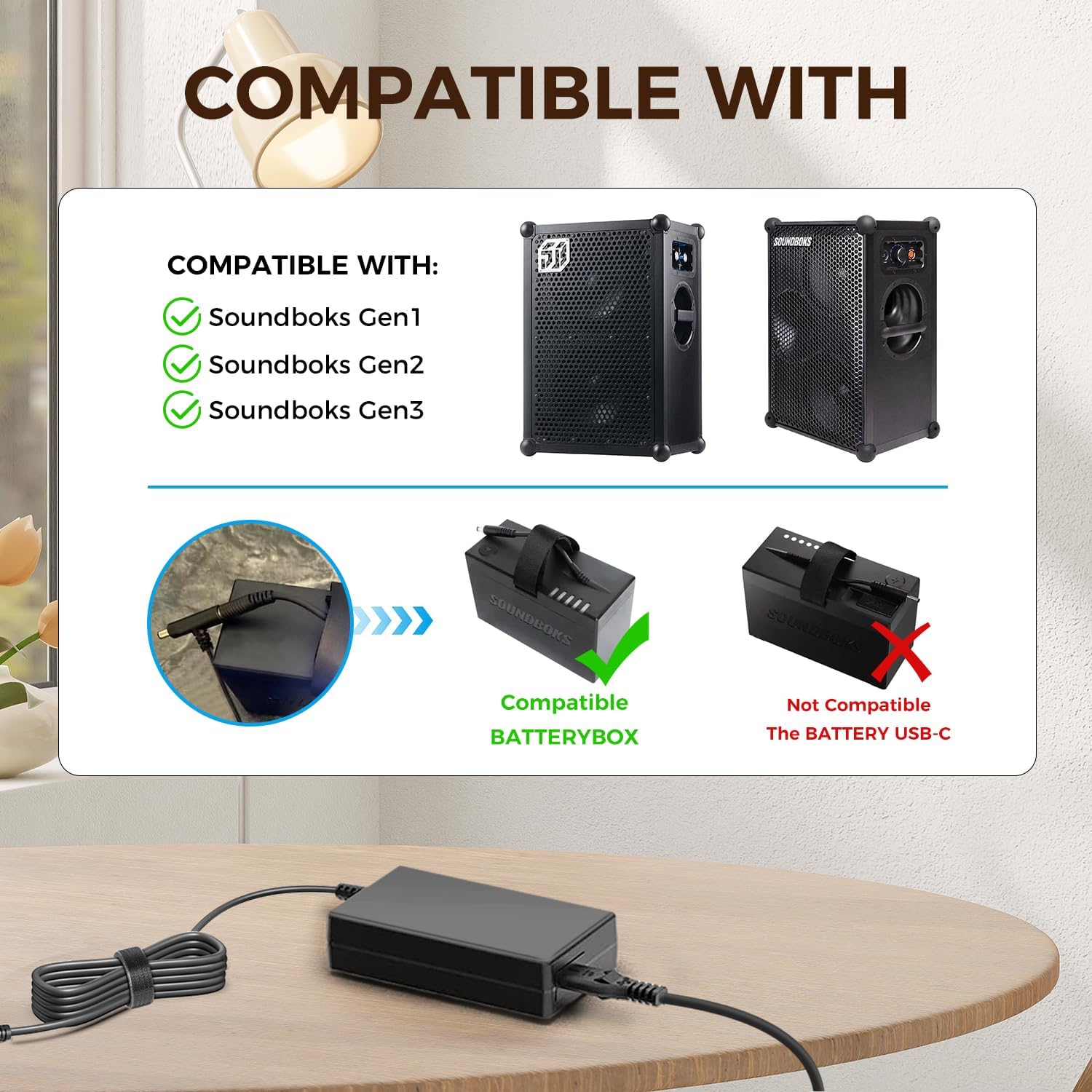 Compatible with Soundboks Gen 1 2 3 Bluetooth Performance Speaker 12.8V 7.8Ah 99.84Wh Rechargeable Battery 14VDC 3.3A 14.0V 3300mA DC14V 14 Volts 14 Volt 14 V 14.0 VDC I.T.E. Switching Power Supply Cord Cable PS Battery Charger Mains PSU
